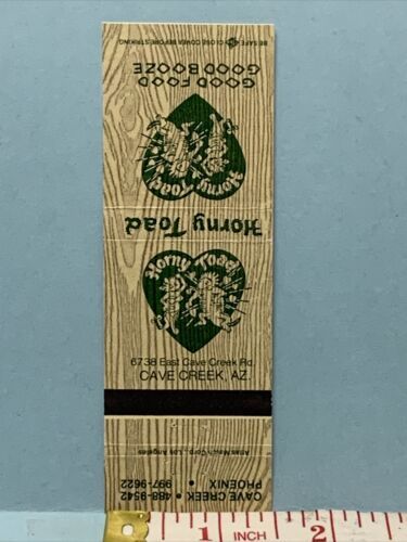 Vintage Matchbook Cover Horny Toad Good Food Good Booze Cave Creek, AZ gmg
