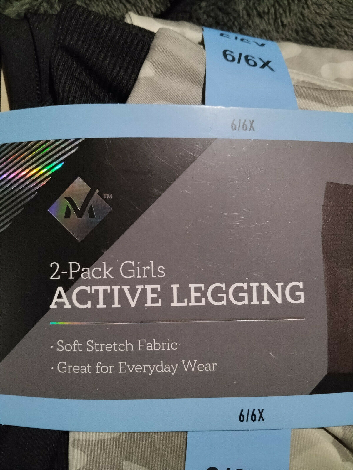 Members Mark 2 Pack Girls 6/6X Active Leggings Soft, Stretch Gray Camo & Black