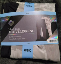 Members Mark 2 Pack Girls 6/6X Active Leggings Soft, Stretch Gray Camo Black