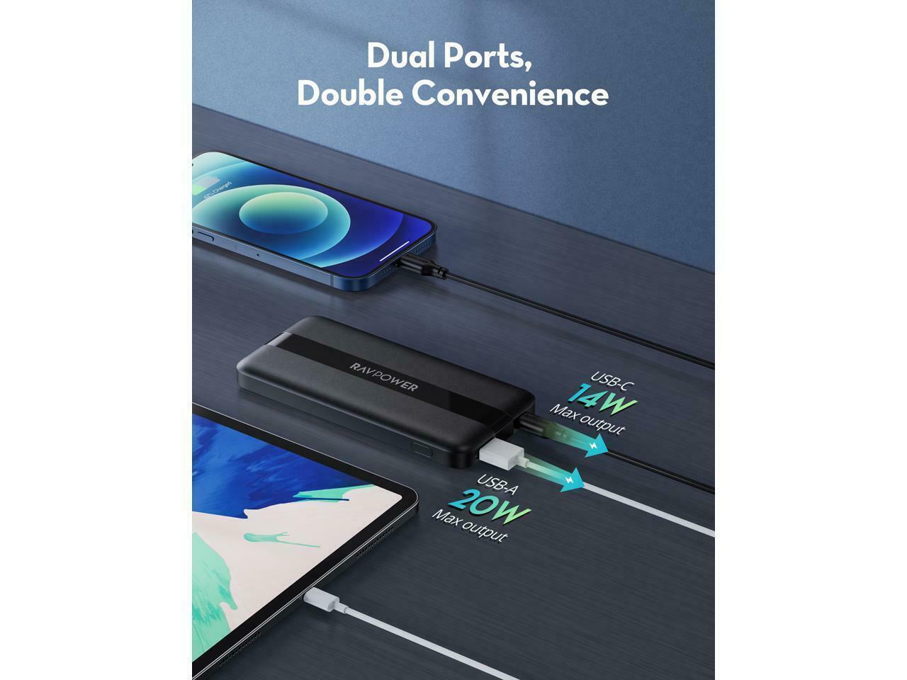 Dual Outputs: Portable charger with USB-C USB outputs can simultaneously revive two devices, and the RAVPower power bank supports trickle charge for your phone for a stable and secure charging process