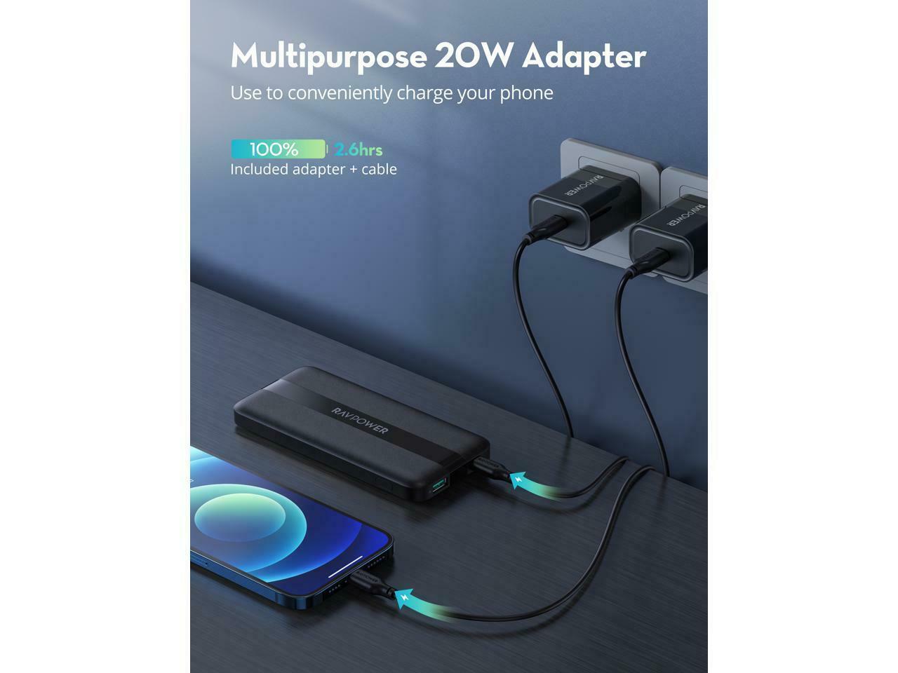 -Refill the RAVPower 10000mAh power bank via the fast charging function with the included 20W adapter.