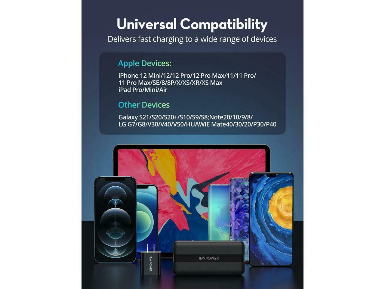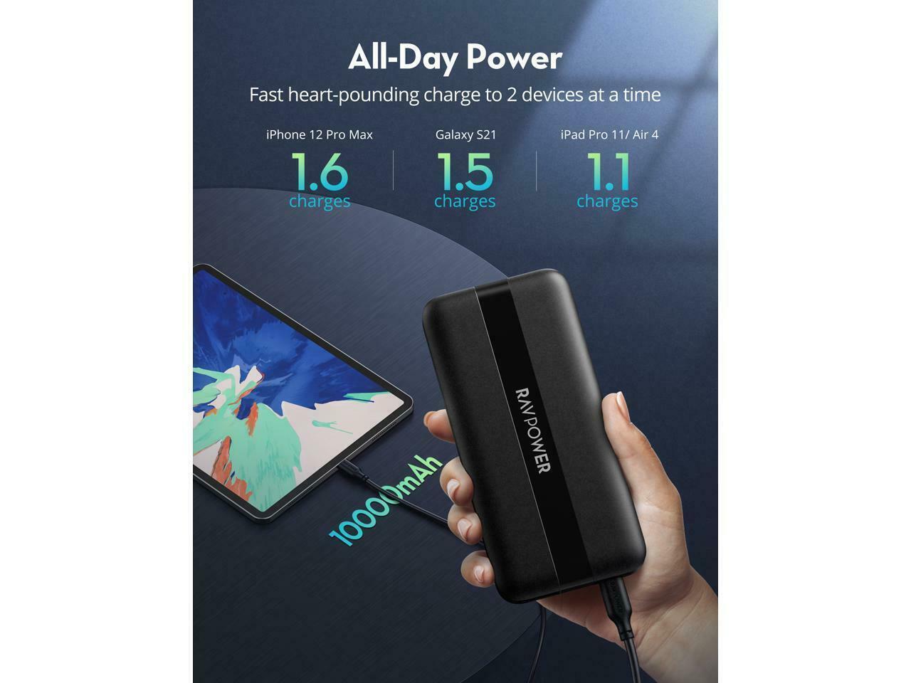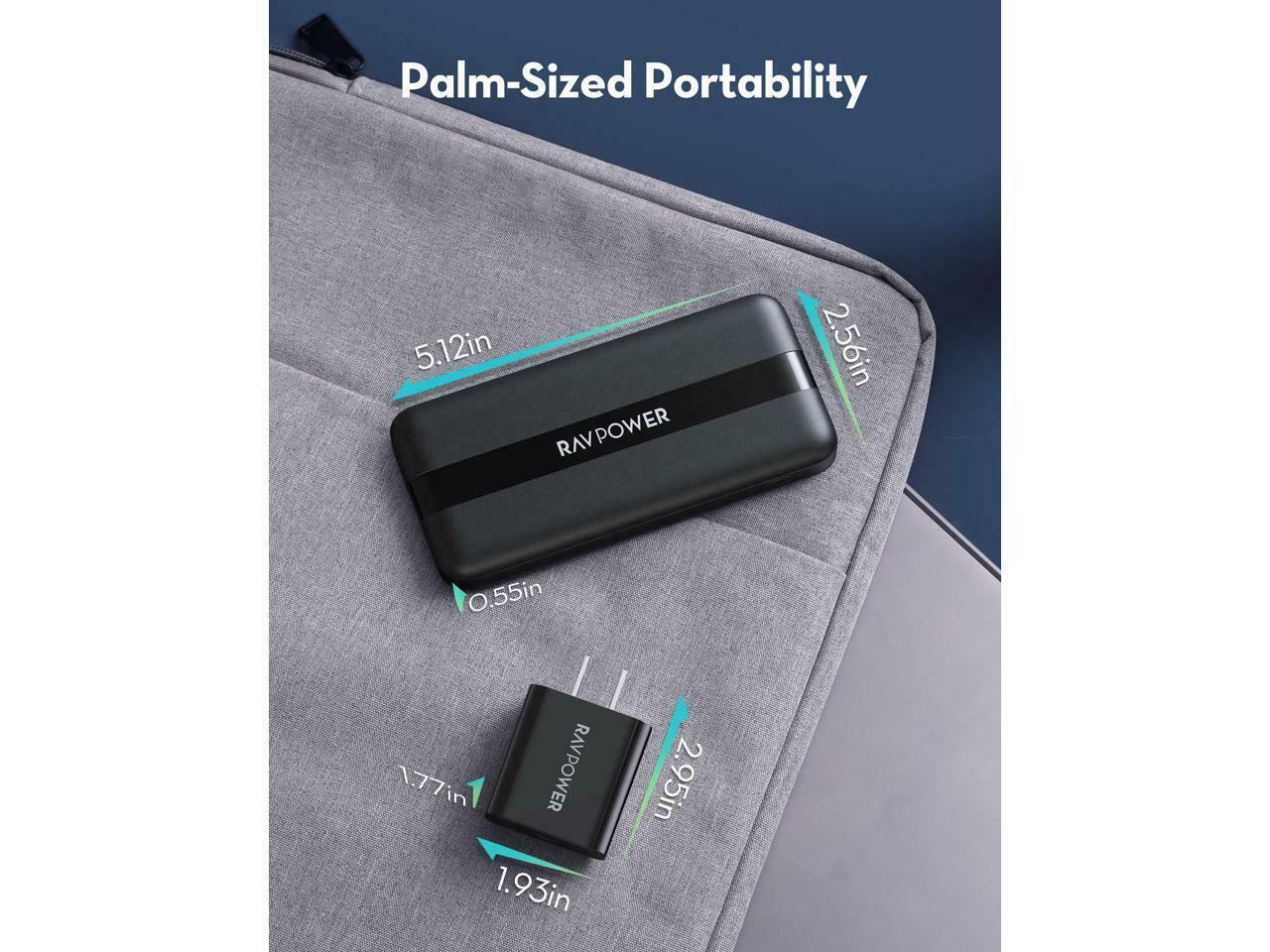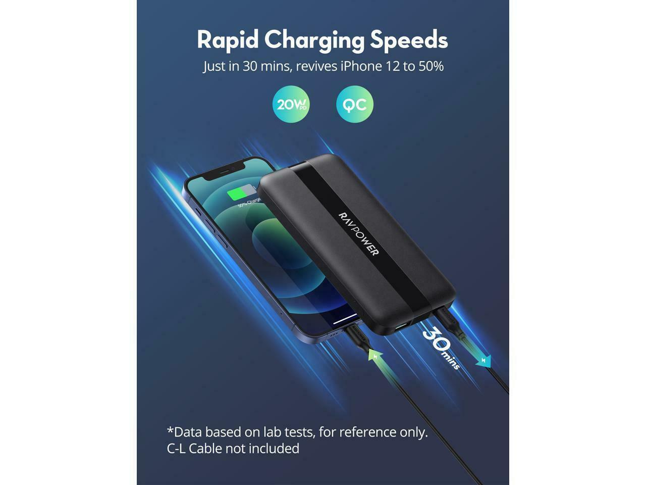Compact Size: Condensed to an incredibly small size, even smaller than an iPhone 12 Pro Max, the RAVPower power bank is lightweight and convenient to bring along with you wherever you go