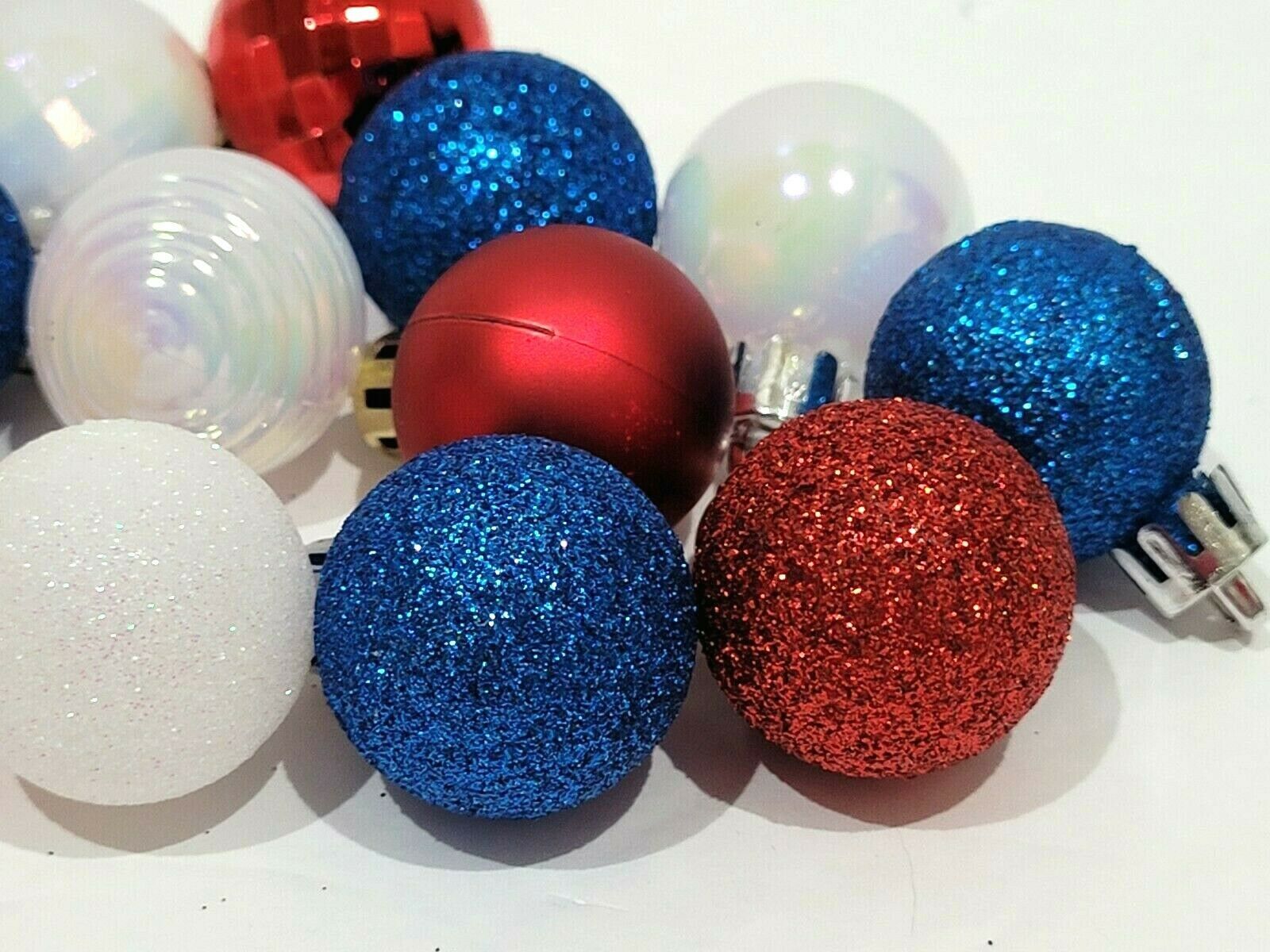 Up for sale are these super adorable plastic MINI ornaments for your mini 4th of July tree. You will receive a set of (12) ornaments you will receive (4) red (4) blue and (4) white (the finish on balls might vary from shiny, matte or glitter). These are must have for your mini tree and the colors are so pretty. These measure approx 1" (not including the cap for hook). These are new never used without there box.