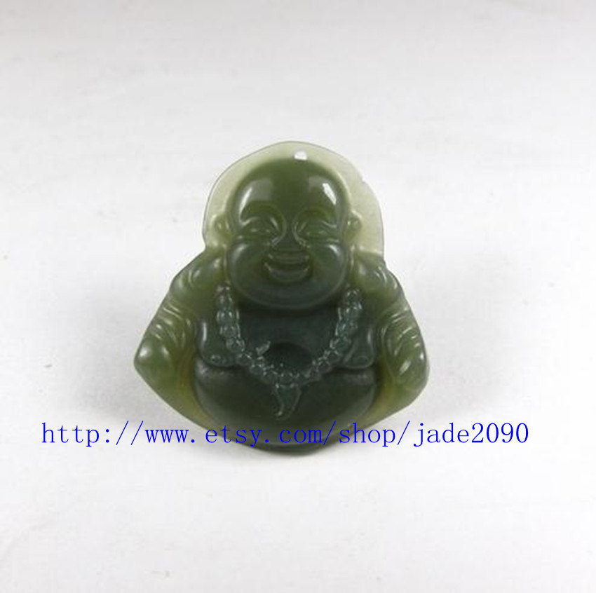 FREE SHIPPING - Natural light green jade jadeite Happy / happiness / Compassi
