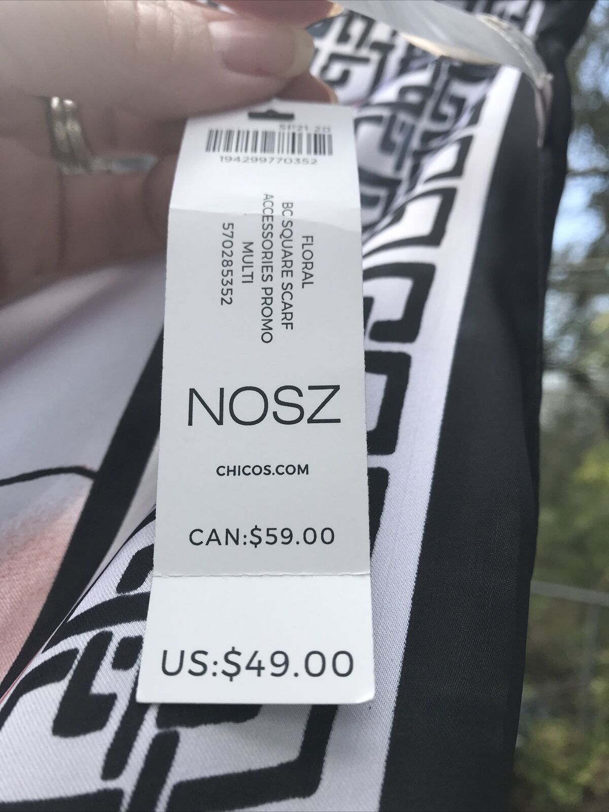 NWT $49 Chico's Greek Key Floral Scarf 42" Sq. 100% Silky Poly as is Wear Frame