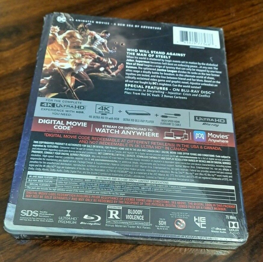 DC Animated Injustice Steelbook (4K+Blu-ray) NEW (Sealed)-Free Box S&H