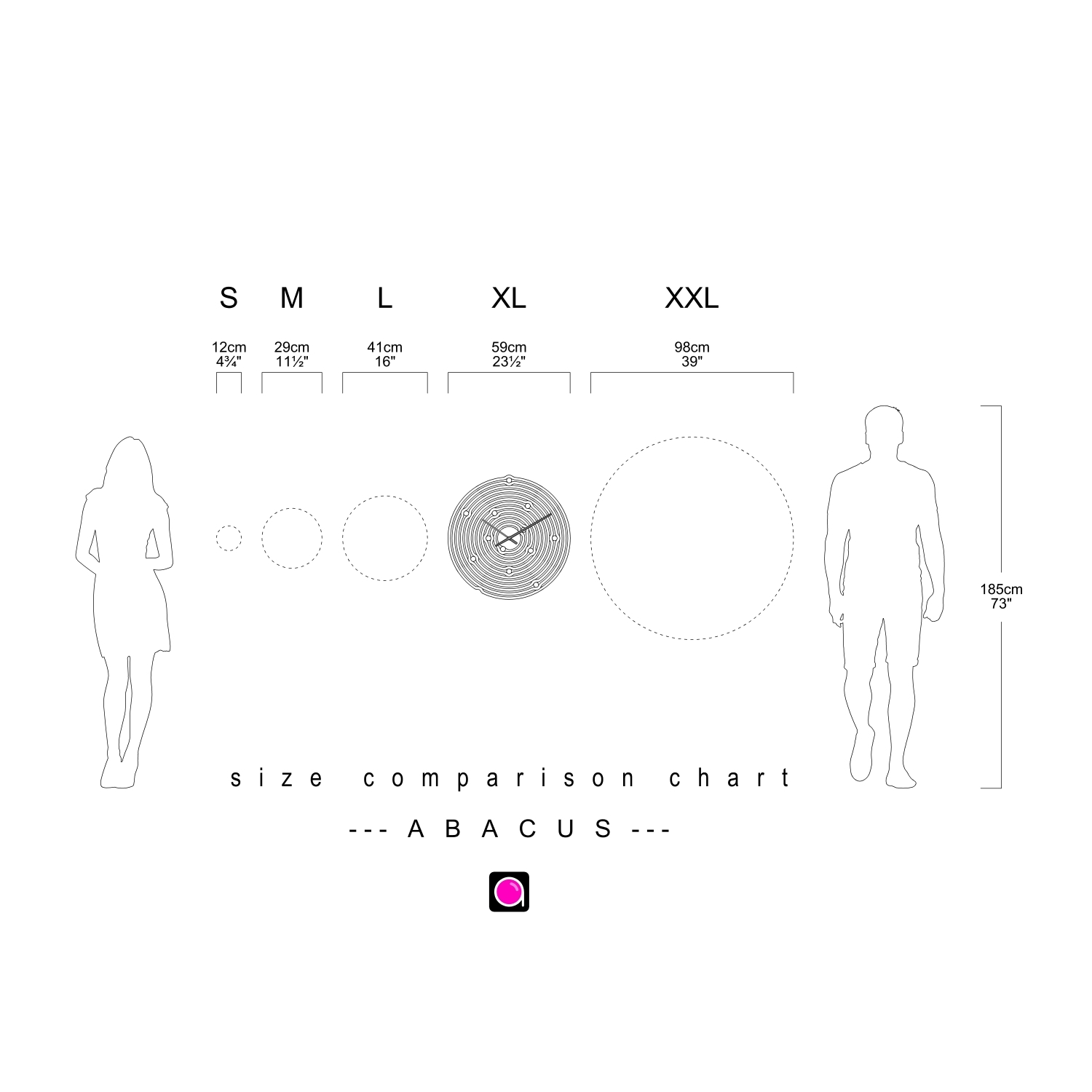 Abacus is an old fashioned 'calculator' that uses colored wooden balls to count the amounts. This clock was inspired by this ancient device.