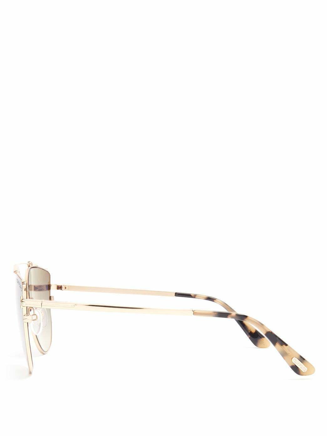 Tom Ford's opulent approach to design is evident in these Jacquelyn sunglasses. They're made in Italy from gold-tone metal to a cat-eye frame modernised by a double bridge, and complete with silver-mirrored lenses. Note the refined details that include adjustable nose pads, cream and black tortoiseshell acetate tips, and a logo-engraved gold-tone metal tip inlay. Let them add a touch of modern glamour to your everyday wardrobe.