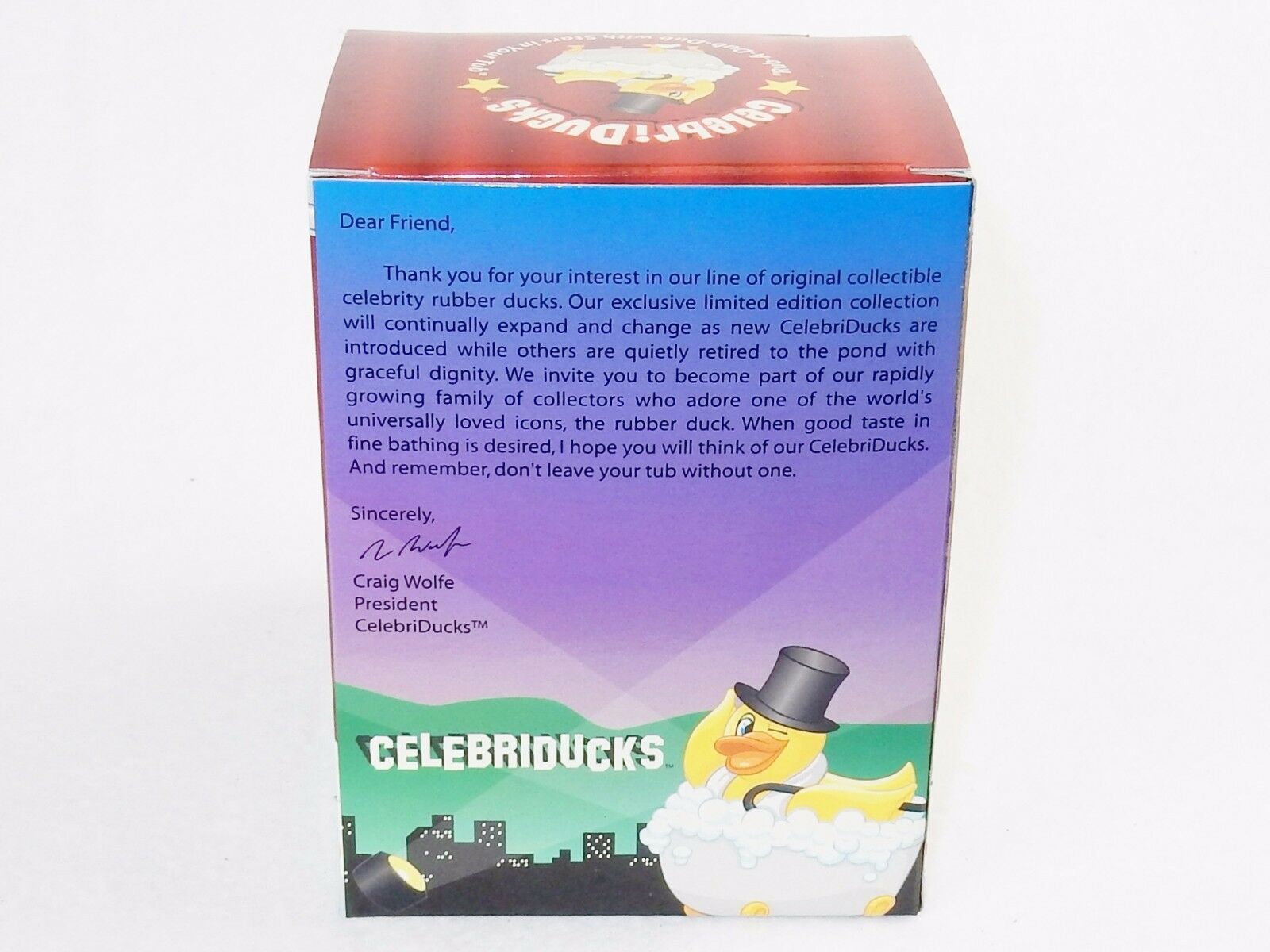 "Rub-A-Dub-Dub With Stars In Your Tub!" This original limited edition celebrity rubber duck collectible from Celebriducks is brand new, and comes in the original full color box.