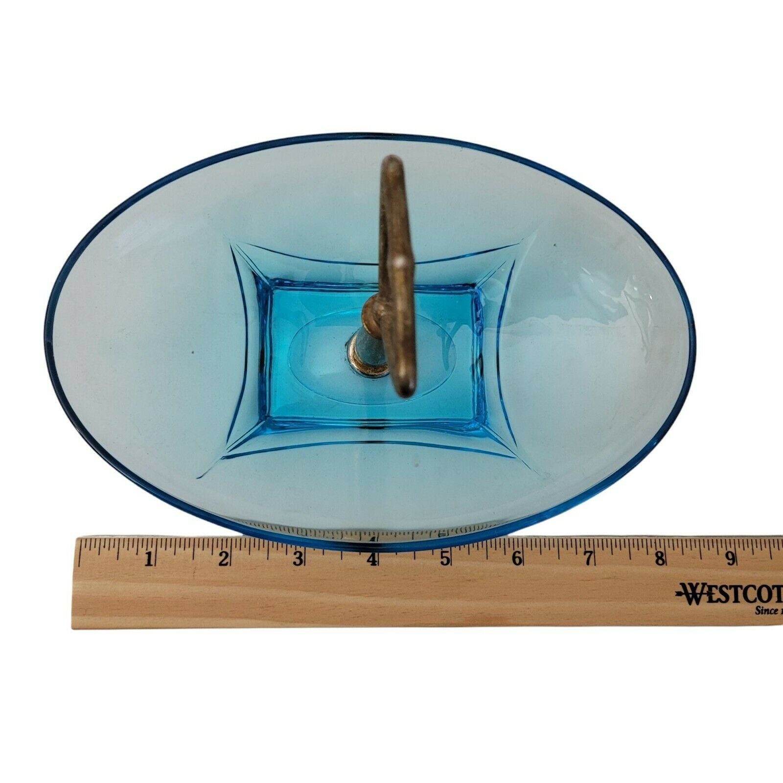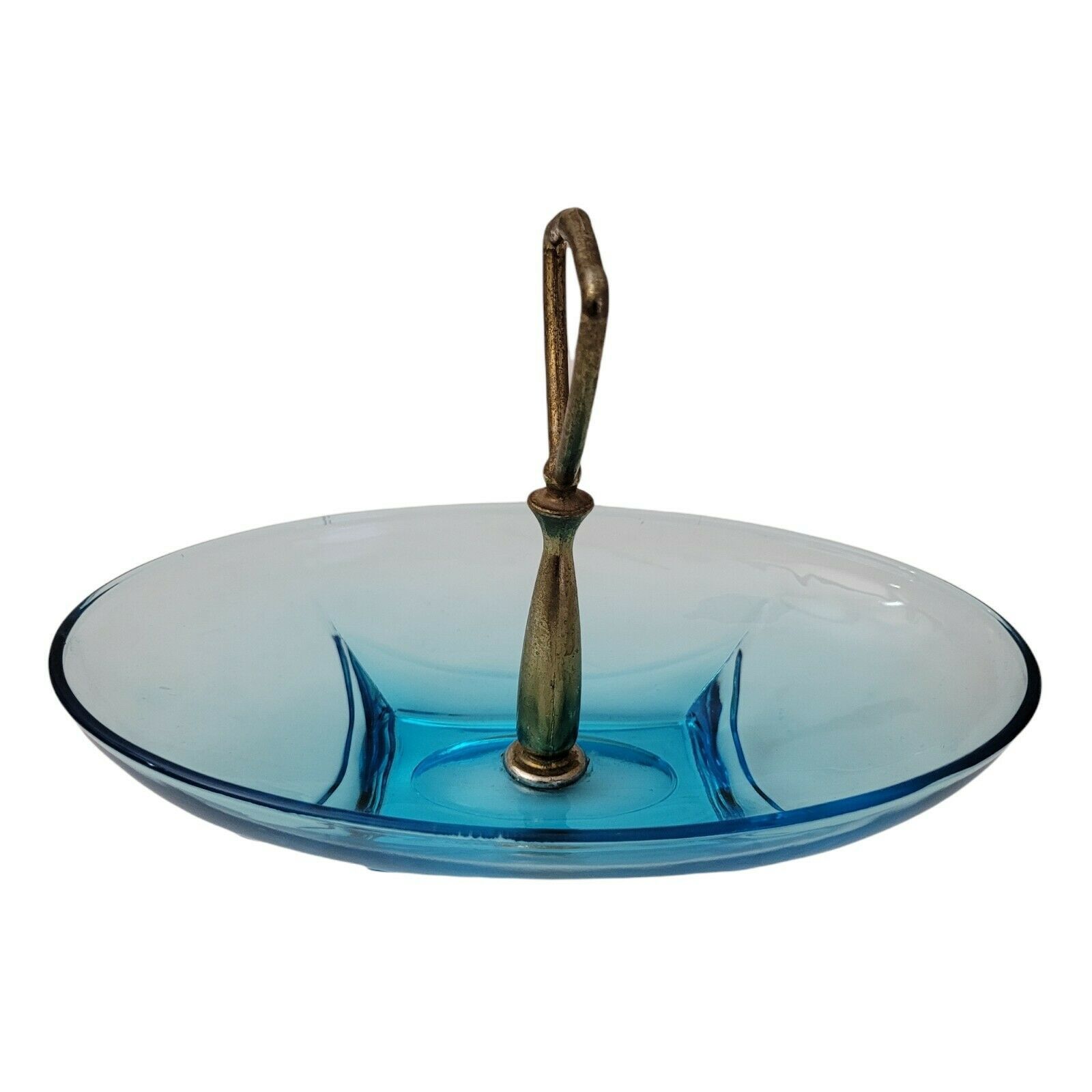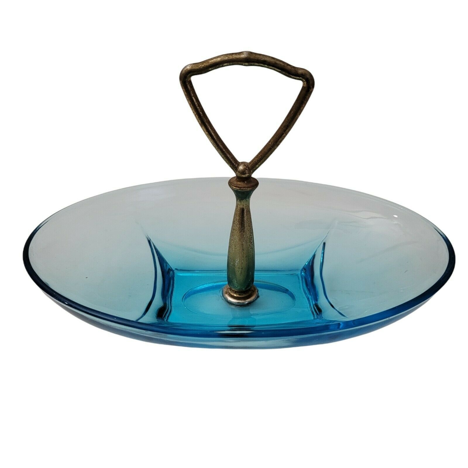 Vintage Hazel Atlas Glass Beautiful Capri Azure Blue Colony Oval Handled Bowl