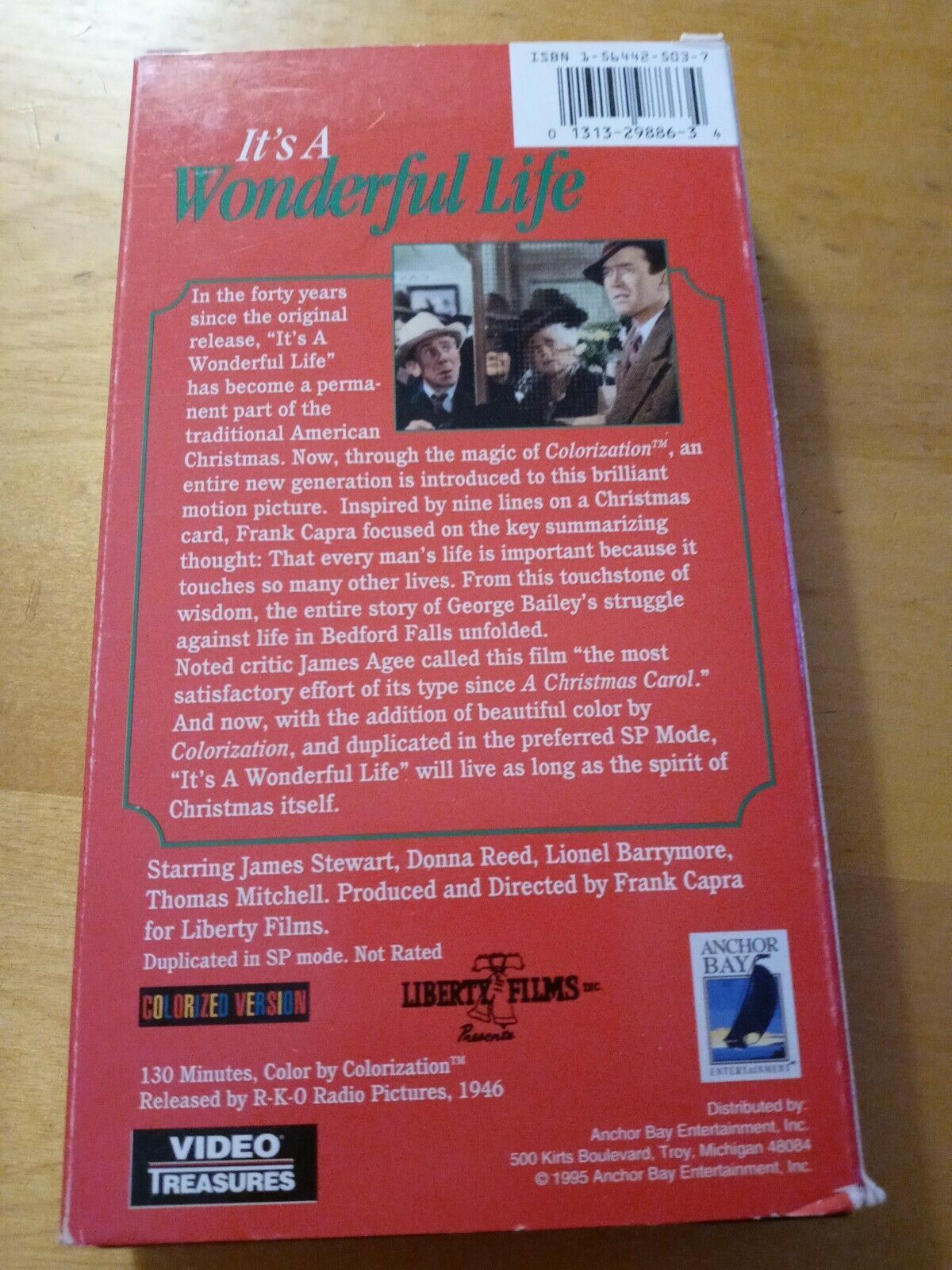 IT'S A WONDERFUL LIFE - VHS James Stewart Christmas Colorized Version