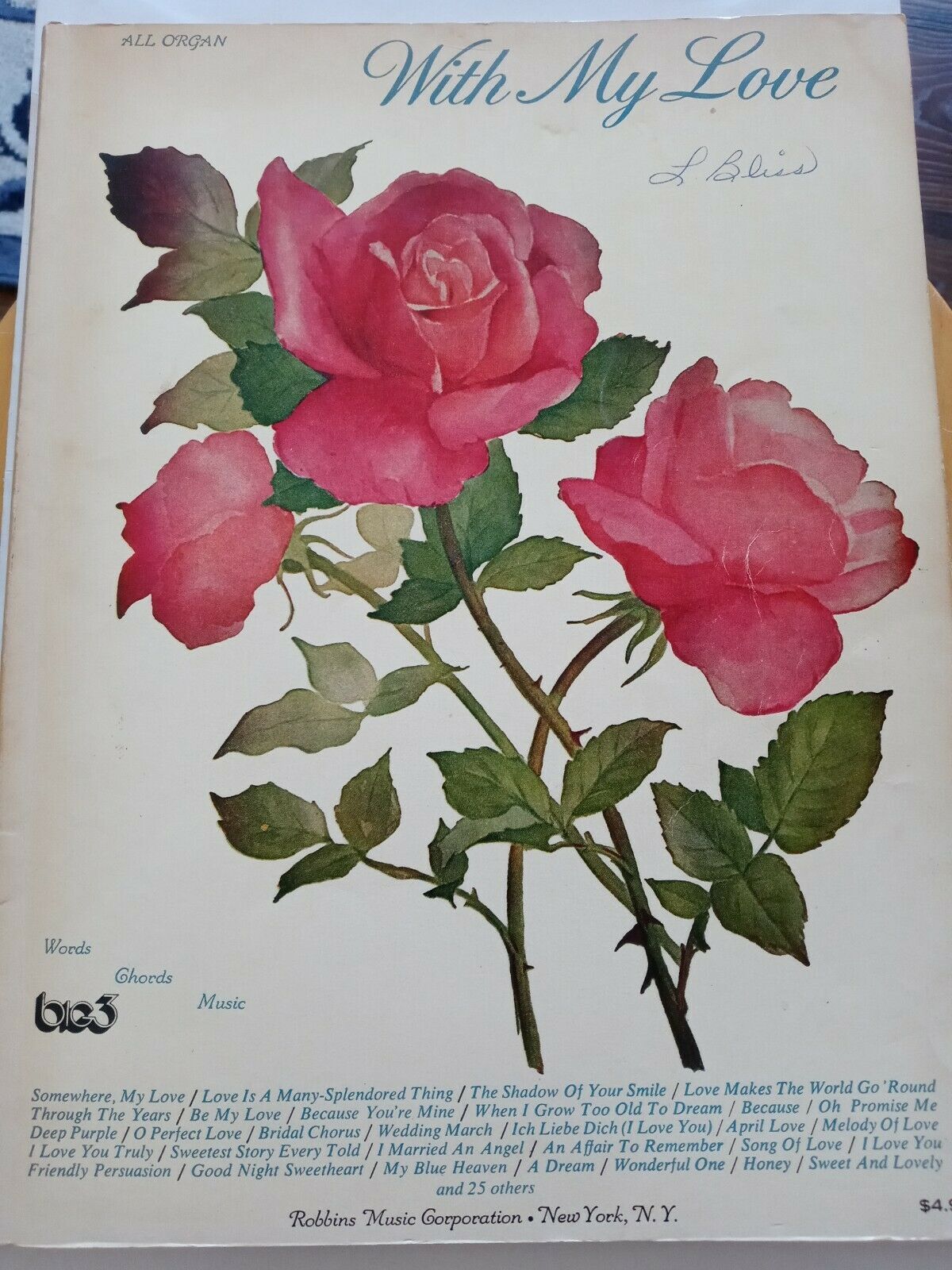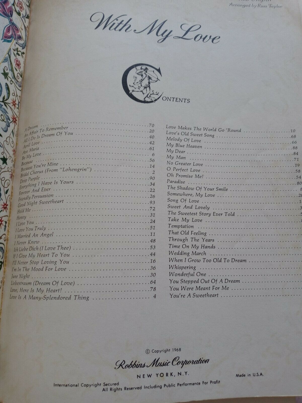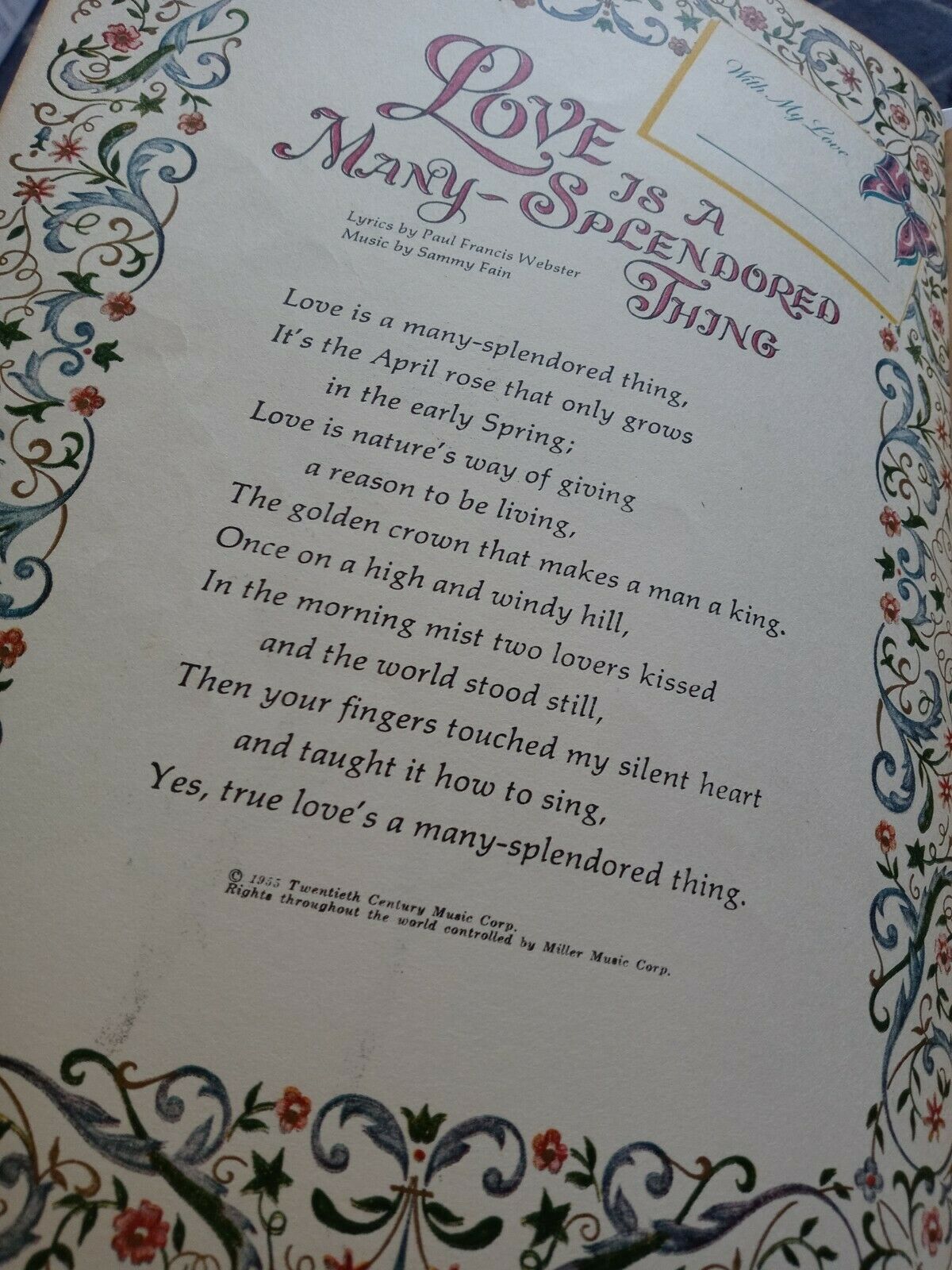 Vintage Sheet Music Book "With My Love" Love Songs & Wedding Words Chords Music