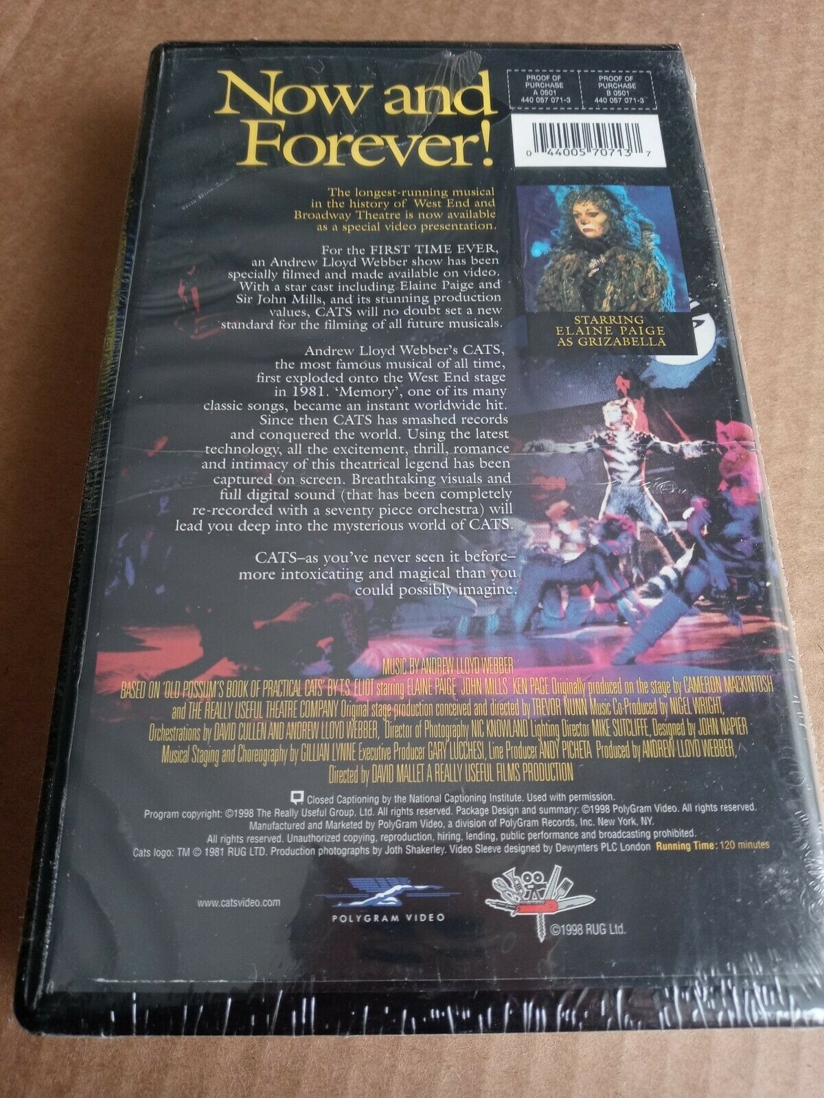 Cats: The Musical Now and Forever! Elaine Paige (VHS Hi-Fi, 1998) NEW SEALED.New Condition;