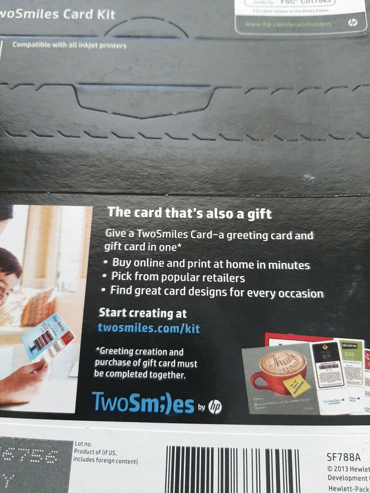 NEW HP TwoSmiles Card Kit 10 Sheets of 5x7 Photo paper for Inkjet Printer . Condition is New. Shipped with USPS First Class Mail within 24 hours.