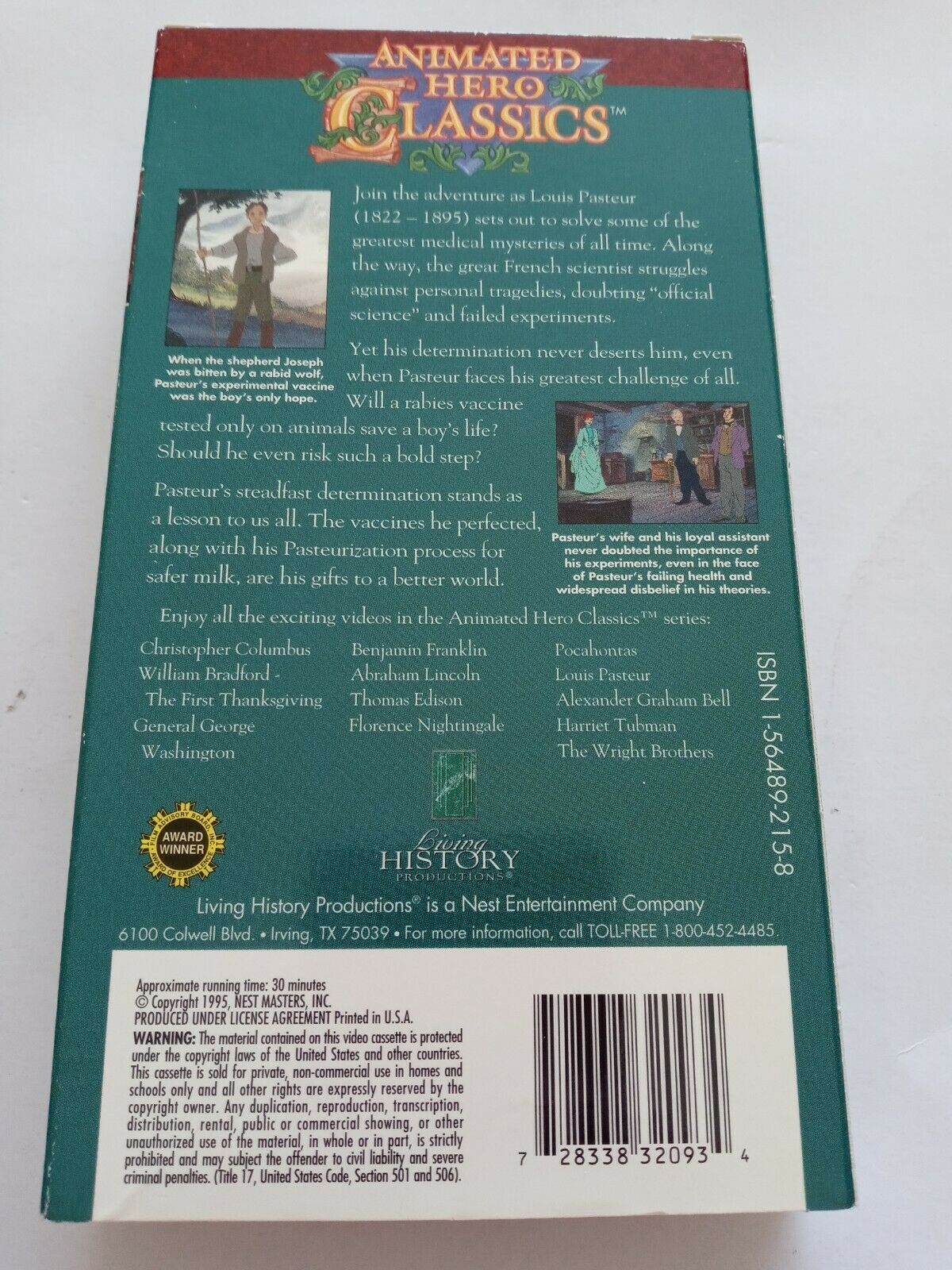 Animated Hero Classics Classroom Ed 1995 VHS Louis Pasteur Living History
