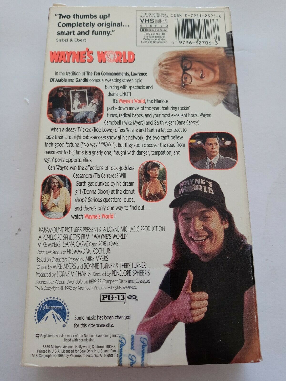 Waynes World (VHS, 1992). Condition is "Very Good". Shipped with USPS First Class.Very Good Condition VHS; Condition is Used, has wear-See Pictures Attached For Exact Condition . Shipped with USPS First Class Mail . You Will Receive 1 as shown in pictures attached. RARE VINTAGE COLLECTIBLE SHIPS N 24 HOURS Packed By Our Award Winning Packaging And Shipping Department Long Time E-commerce Seller For Over 20 Years LIMITED AVAILABILITY THANK YOU FOR SUPPORTING OUR FAMILY OWNED USA BUSINESS Inventory Box #5135