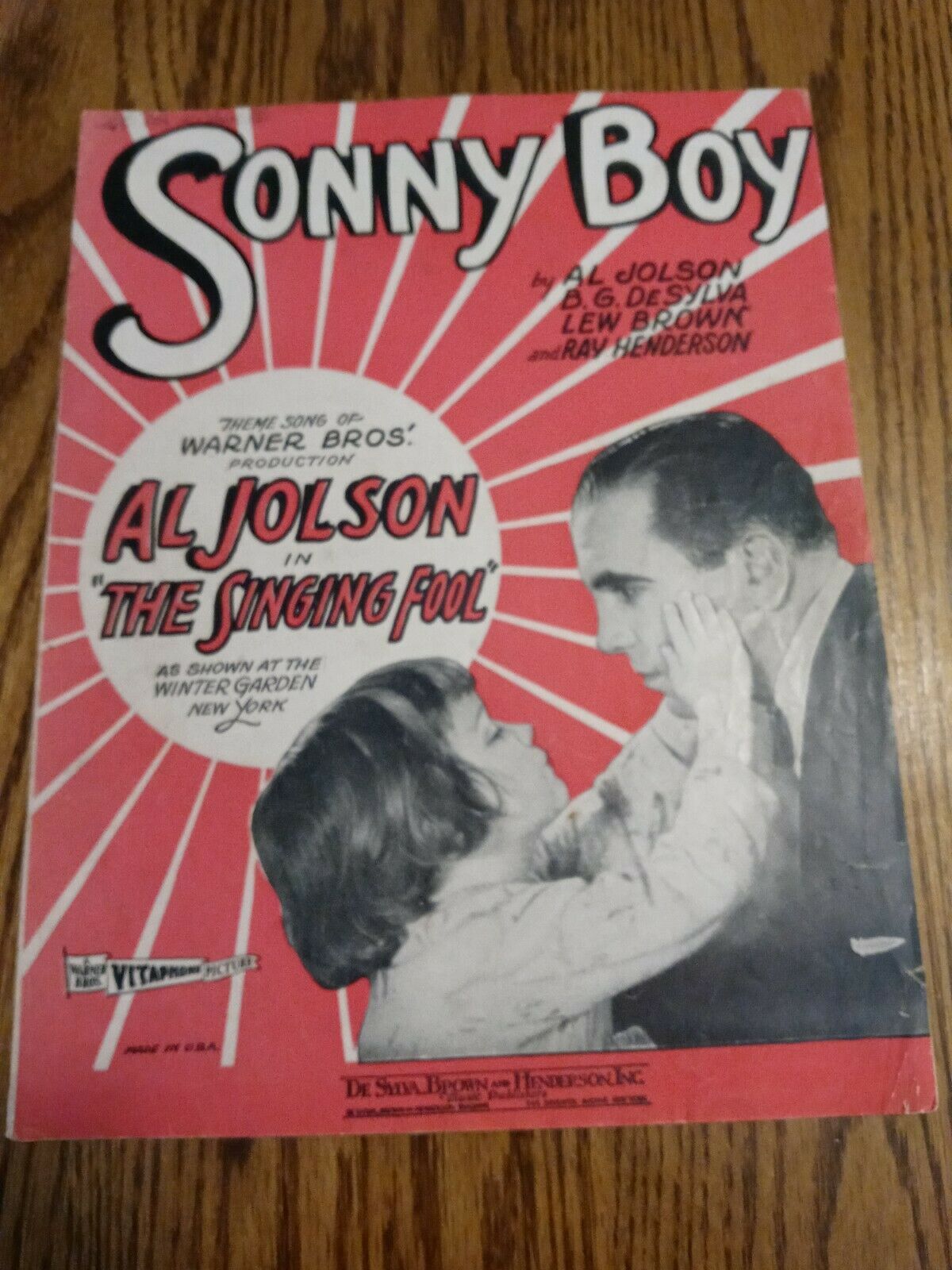 Sonny Boy, Al Jolson, Davey Lee, The Singing Fool, Sheet Music