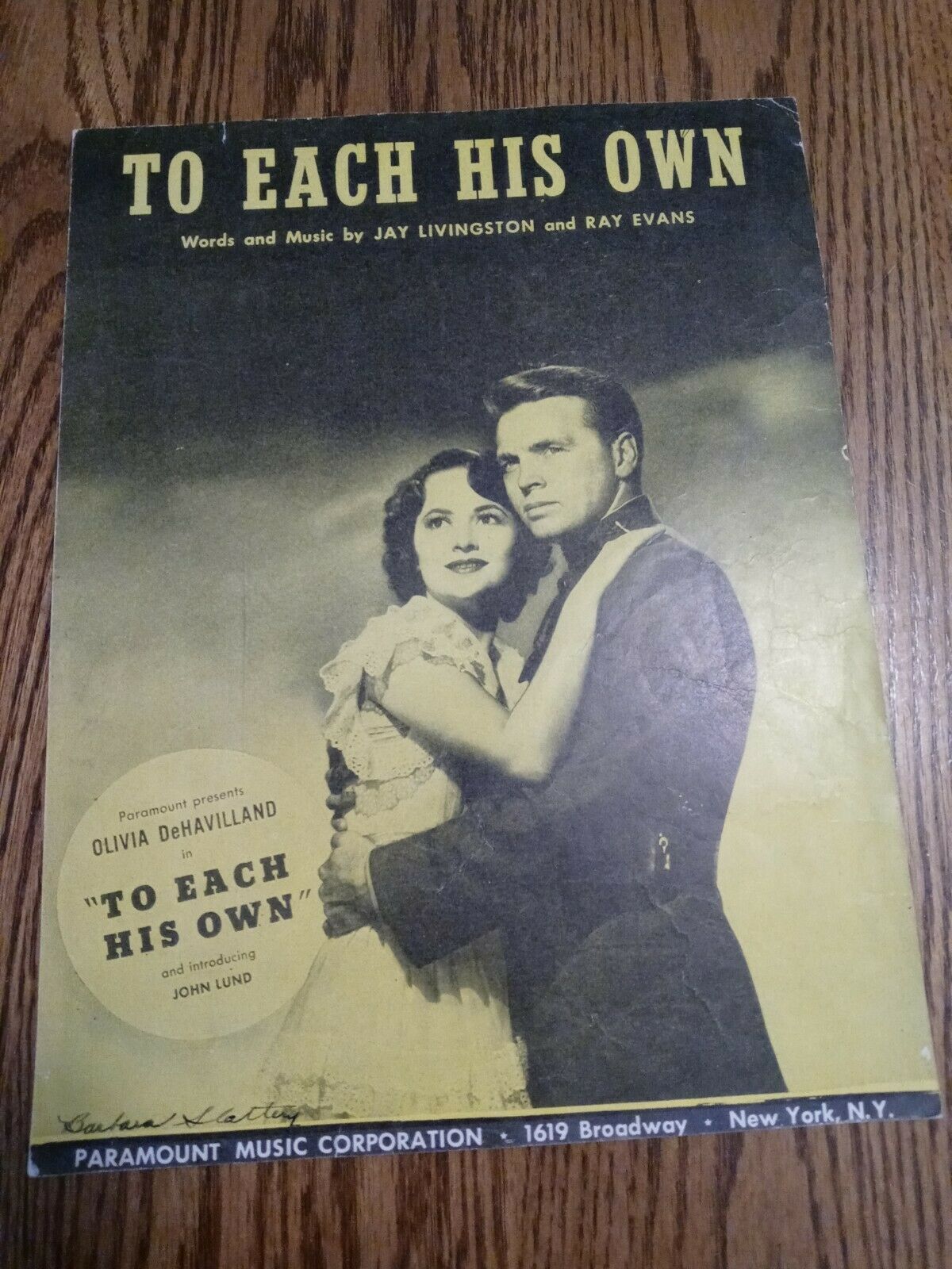 Sheet Music - TO EACH HIS OWN (1946 )