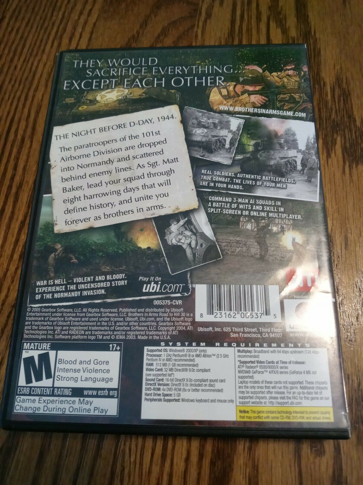 Pc Dvd-rom Computer Game Brothers In Arms Road to Hill 30.Very Good Condition ; Condition is Used-See Pictures Attached For Exact Condition . Shipped with USPS First Class Mail . You Will Receive 1 ea PC CD ROM as shown in pictures attached. SHIPS N 24 HOURS Packed By Our Award Winning Packaging And Shipping Department Long Time E-commerce Seller For Over 20 Years LIMITED AVAILABILITY THANK YOU FOR SUPPORTING OUR FAMILY OWNED USA BUSINESS Collectible Very Good Condition PC CD ROM (Has Wear See Pictures Attached For Exact Description) - CD's Are Tested And Cleaned With Our Professional CD Cleaning Equipment Before Shipped - Ships Immediately - Great Product at a Unbelievable Price - Your Chance To Own This Collectible PC CD ROM Before Its Gone. Inventory Box #6211
