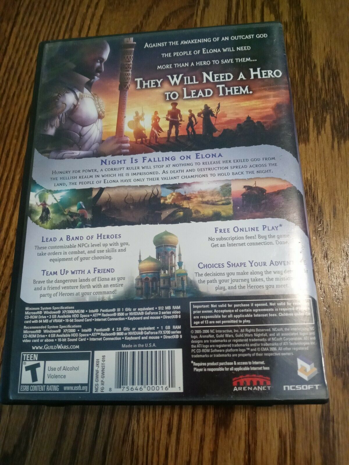 Guild Wars Nightfall - PC CD ROM COMPLETE w/Manual, Case, 3-Discs.Very Good Condition ; Condition is Used-See Pictures Attached For Exact Condition . Shipped with USPS First Class Mail . You Will Receive 1 ea PC CD ROM as shown in pictures attached. SHIPS N 24 HOURS Packed By Our Award Winning Packaging And Shipping Department Long Time E-commerce Seller For Over 20 Years LIMITED AVAILABILITY THANK YOU FOR SUPPORTING OUR FAMILY OWNED USA BUSINESS Collectible Very Good Condition PC CD ROM (Has Wear See Pictures Attached For Exact Description) - CD's Are Tested And Cleaned With Our Professional CD Cleaning Equipment Before Shipped - Ships Immediately - Great Product at a Unbelievable Price - Your Chance To Own This Collectible PC CD ROM Before Its Gone. Inventory Box #6211