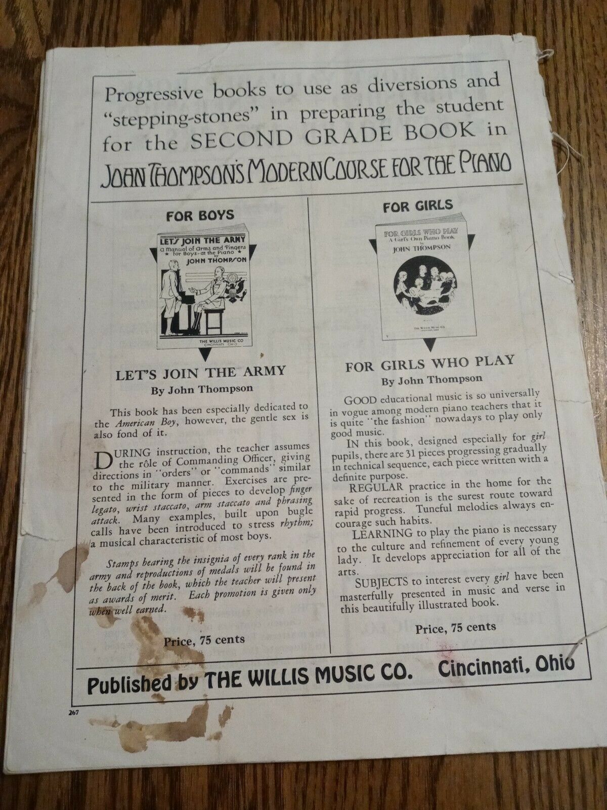 John Thompson's Modern Course for the Piano: First Grade Book missing cover