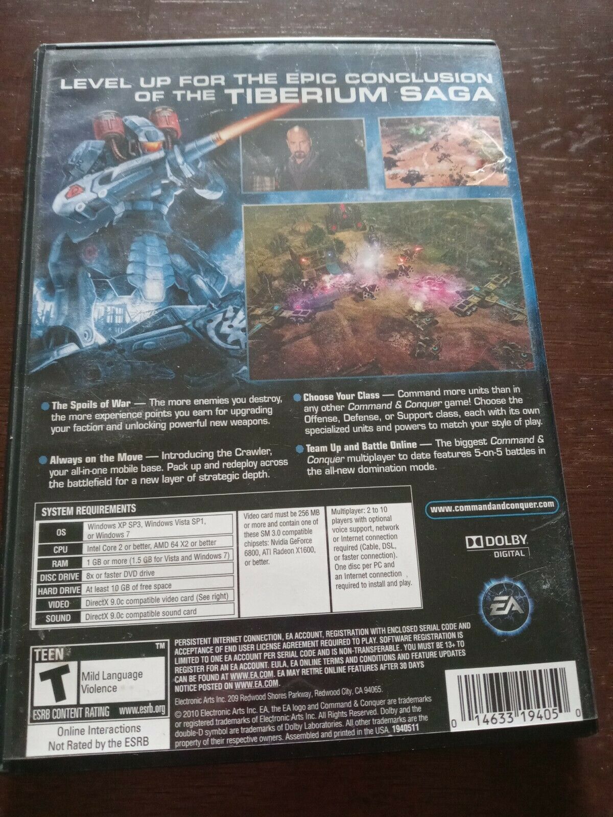 Command Conquer 4: Tiberian Twilight (PC, 2010). Condition is "Very Good". Shipped with USPS Media Mail.Very Good Condition ; Condition is Used-See Pictures Attached For Exact Condition . Shipped with USPS First Class Mail . You Will Receive 1 ea PC CD ROM as shown in pictures attached. SHIPS N 24 HOURS Packed By Our Award Winning Packaging And Shipping Department Long Time E-commerce Seller For Over 20 Years LIMITED AVAILABILITY THANK YOU FOR SUPPORTING OUR FAMILY OWNED USA BUSINESS Collectible Very Good Condition PC CD ROM (Has Wear See Pictures Attached For Exact Description) - CD's Are Tested And Cleaned With Our Professional CD Cleaning Equipment Before Shipped - Ships Immediately - Great Product at a Unbelievable Price - Your Chance To Own This Collectible PC CD ROM Before Its Gone. Inventory Box #6217