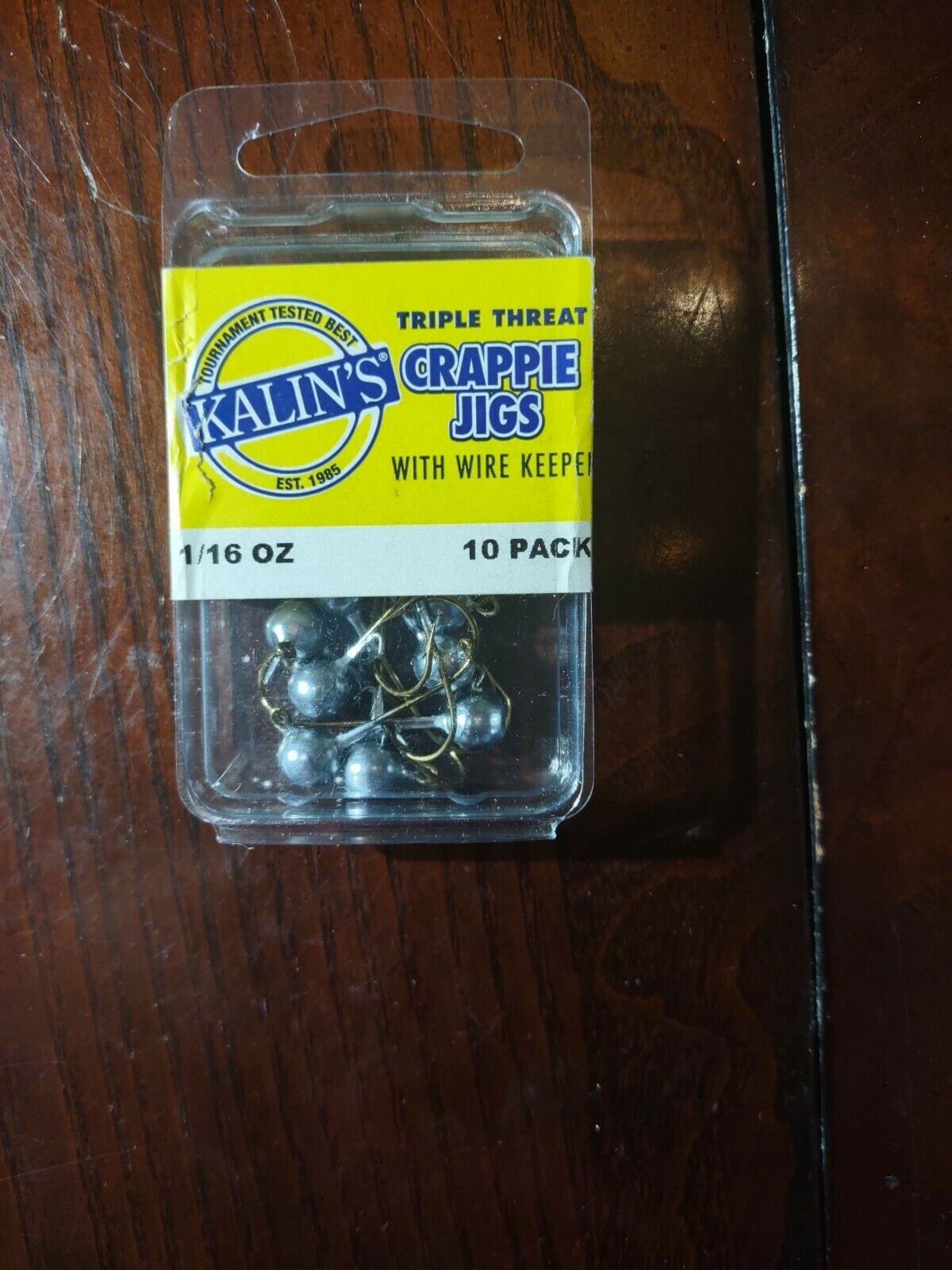 This set of 10 Kalin's Jigs in silver is perfect for catching crappie. The jigs are 1/16oz in weight and come in a pack of 10. They are brand new and ready to ship within 24 hours. The bait type is a jig and the shape is a fish, making it ideal for catching crappie. This set is a great addition to any angler's collection and is sure to improve your chances of success on your next fishing trip.
