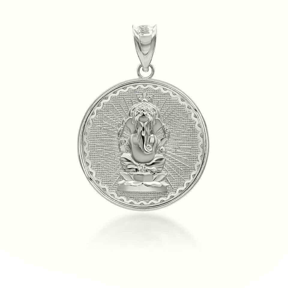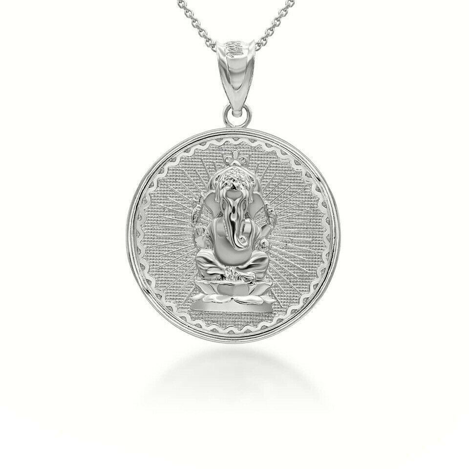 Sterling Silver Lord Ganesha Hindu Coin Pendant Necklace