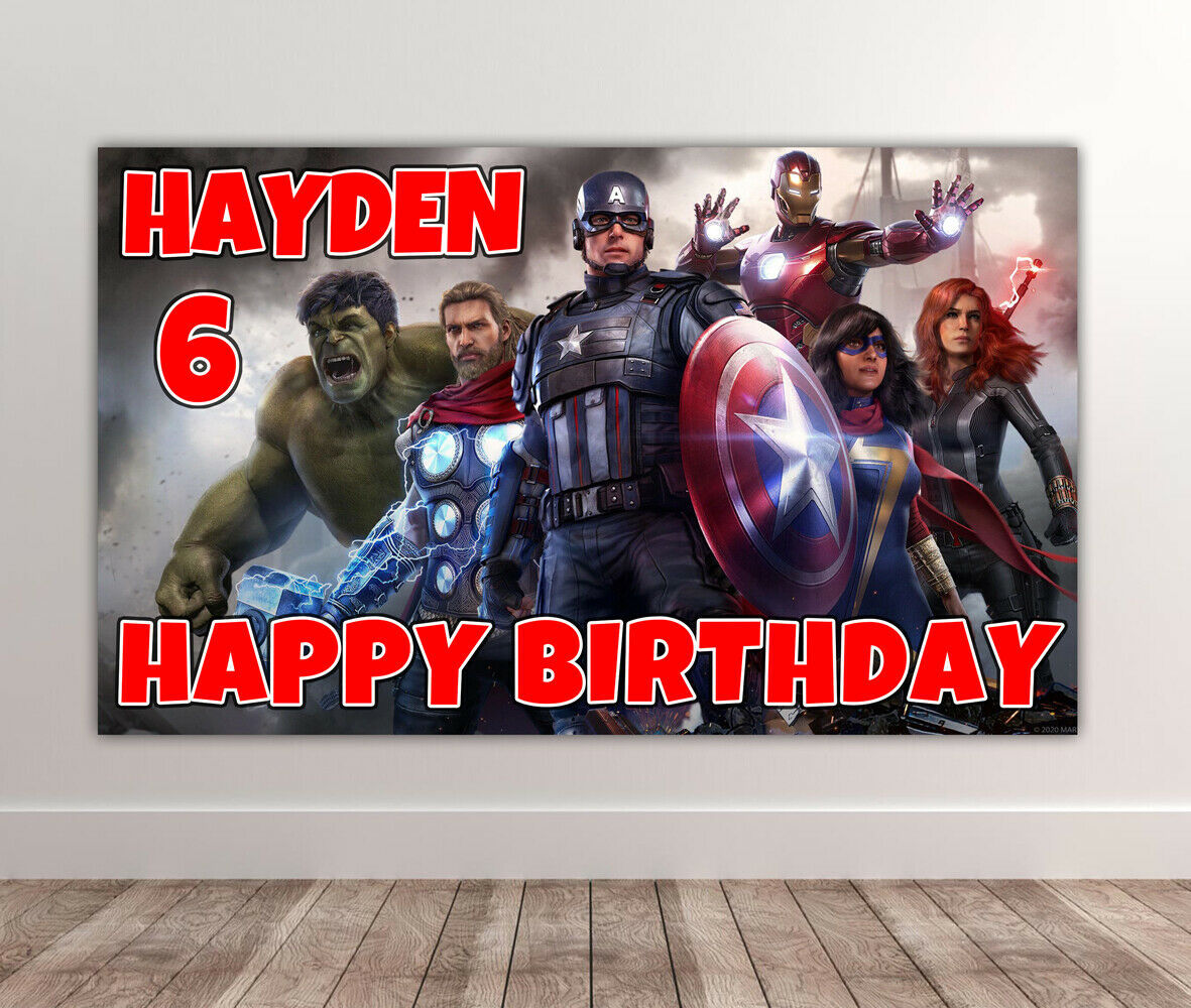 2 X MARVEL AVENGERS Personalised Birthday Backdrop - Superheroes 40 x 24 Inches
