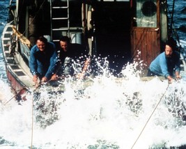 Jaws Robert Shaw Roy Scheider Richard Dreyfus on Orca shark on ropes 8x10 photo
