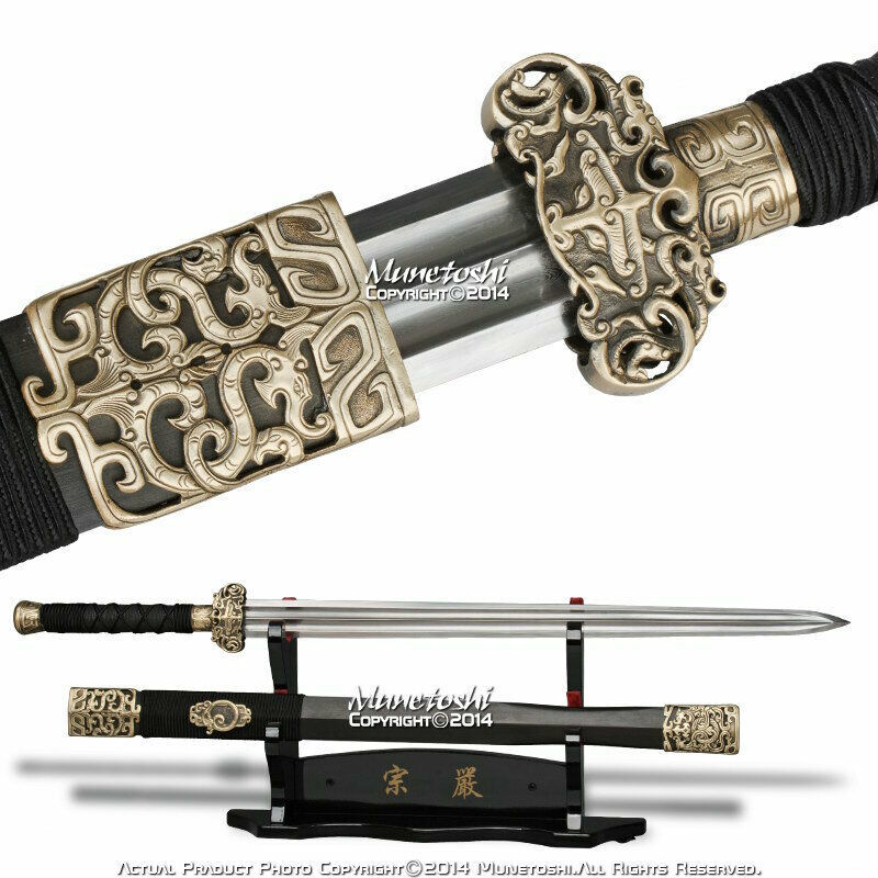 Forge Folded Handmade Dragon Han Wu Sword Chinese Jian w/ Detail Brass Fittings