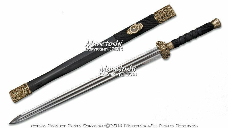 45? Black Dragon Chinese Sword Dao 65 MN Spring Steel Slightly Sharp Scabbard