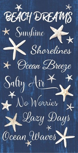 23.5" X 44" Panel Beach Dreams Shining Brightly Summer Beach Words Phrases Starfish Blue Cotton Fabric Panel (PANEL-C1232-NAVY)