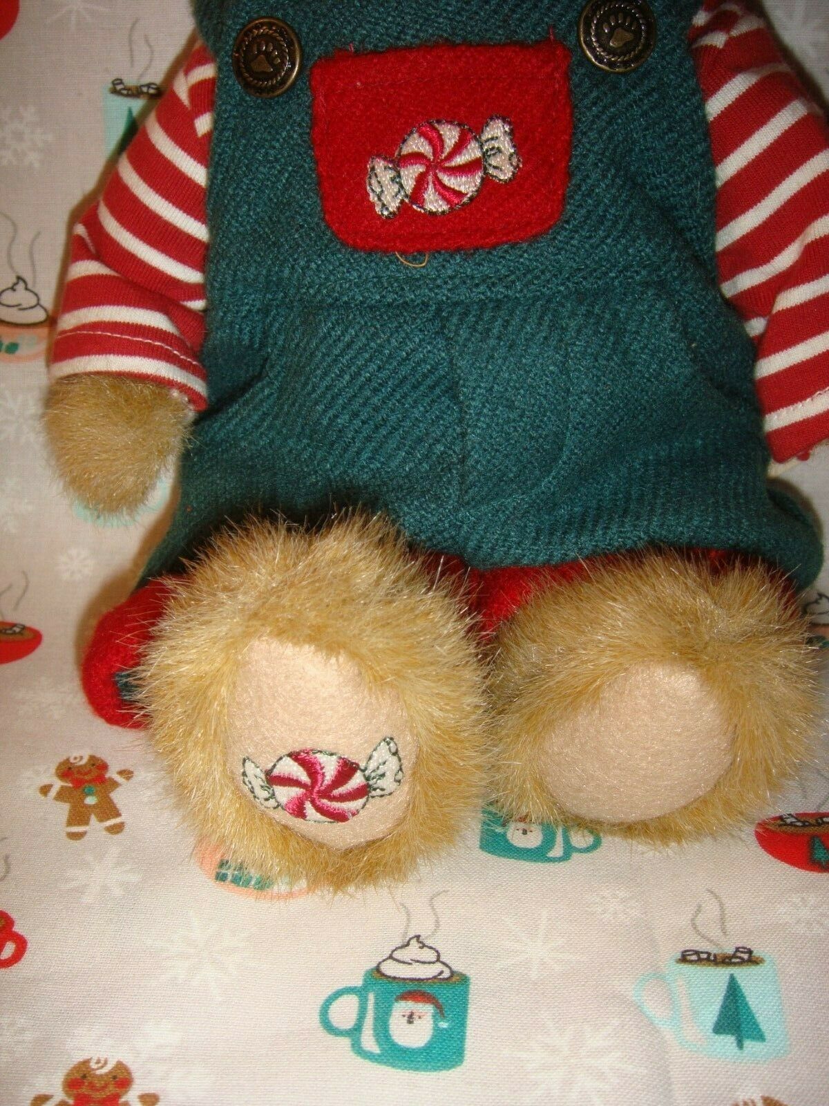 Jr Has Candy Embroidered On Leg Paw And Chest Of Green Overalls.