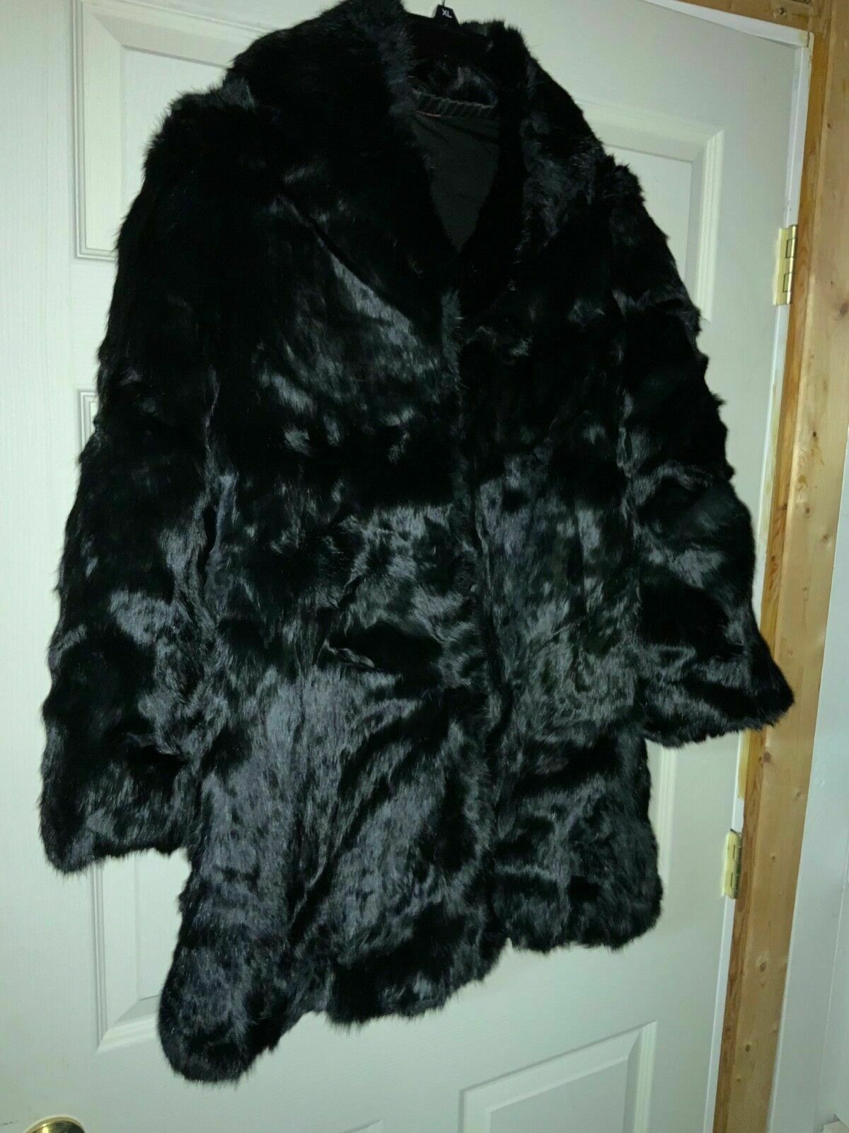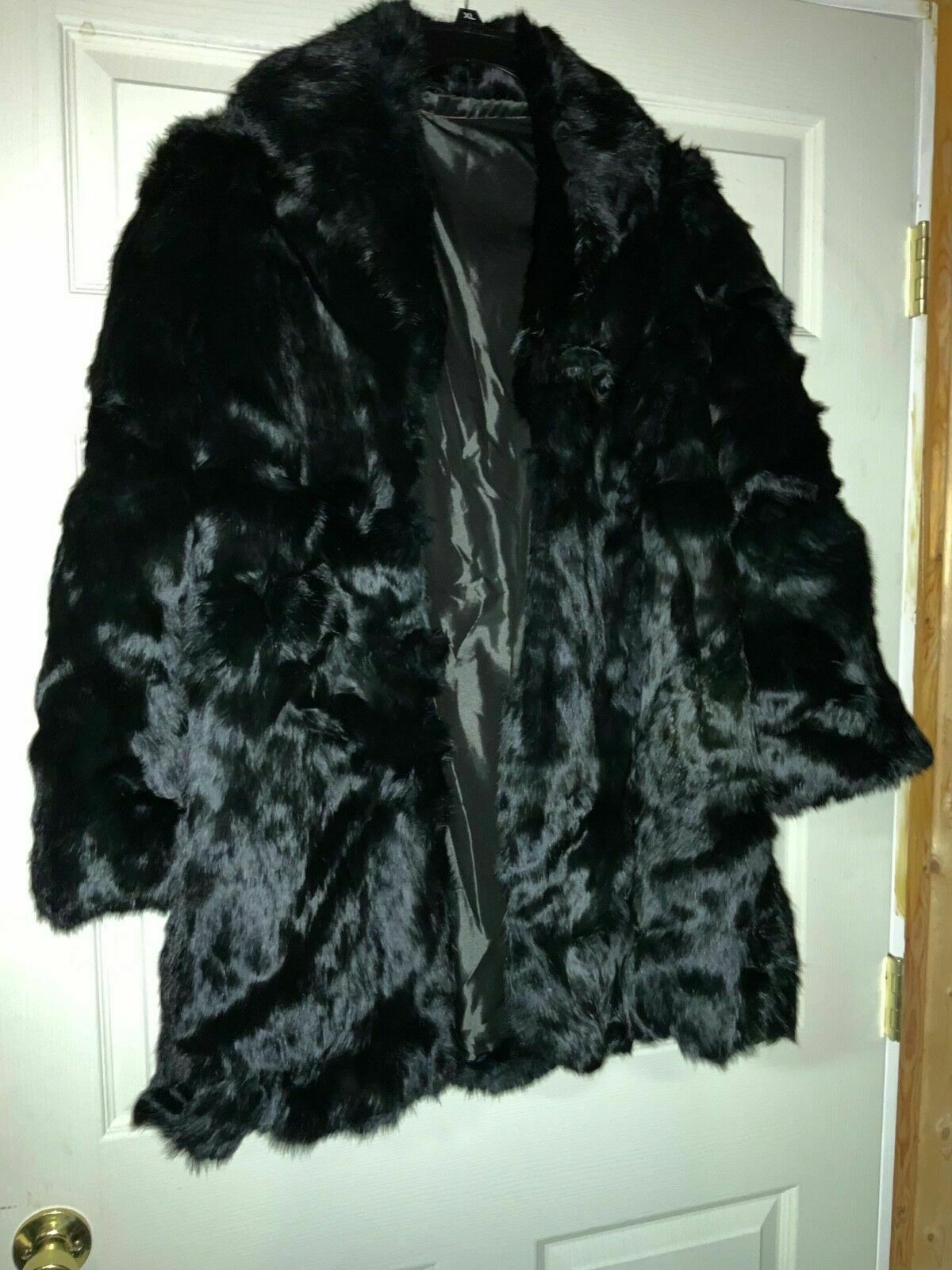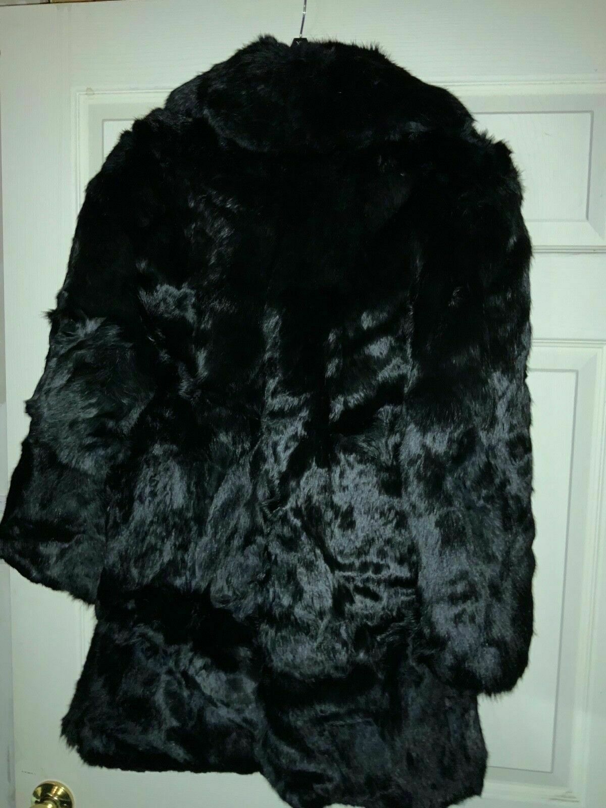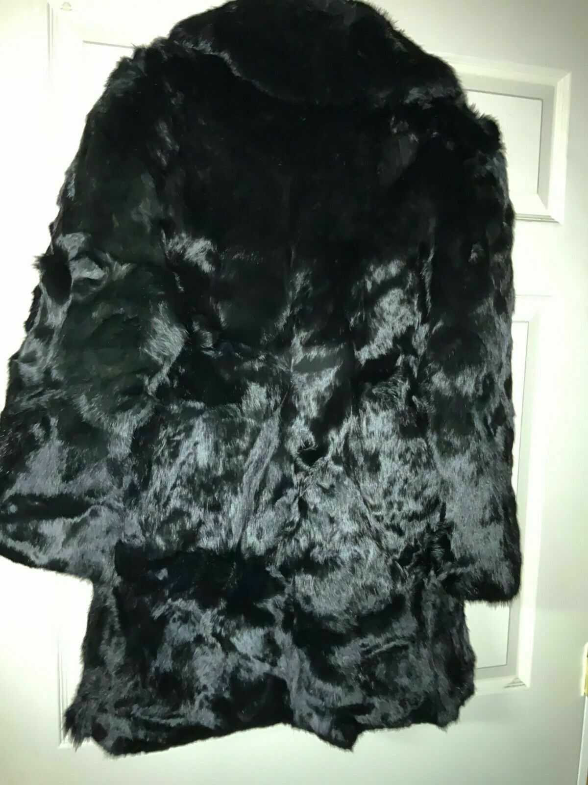 BLACK RABBIT FUR GLAM SWING JACKET SIZE SMALL PETITE