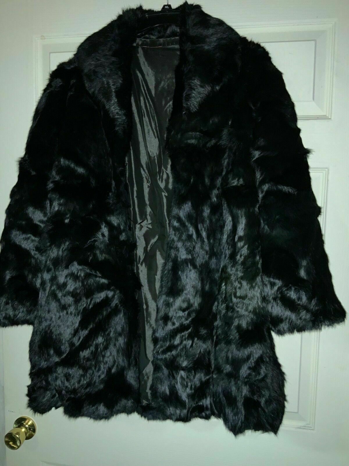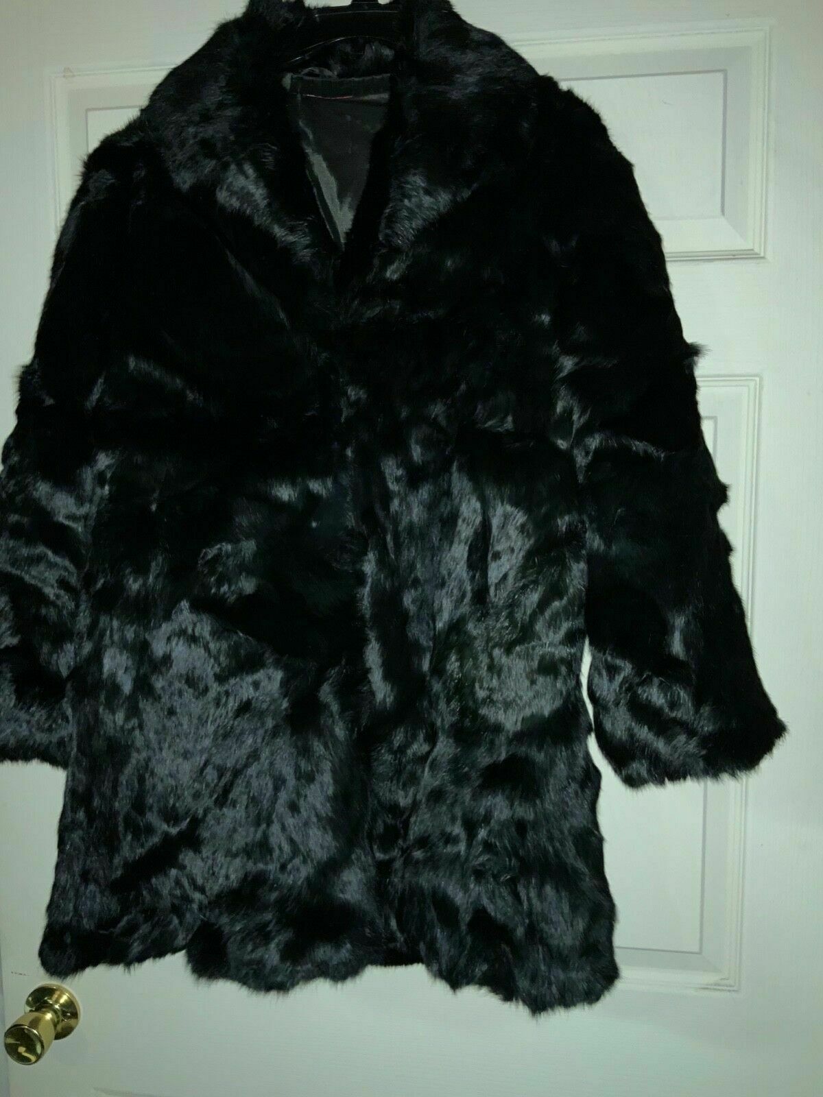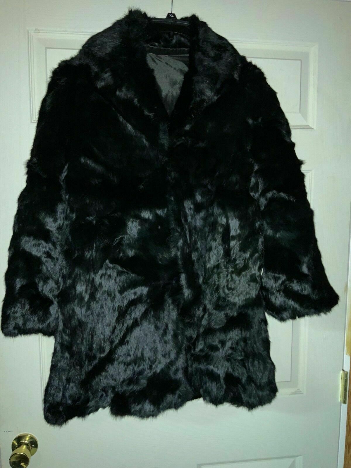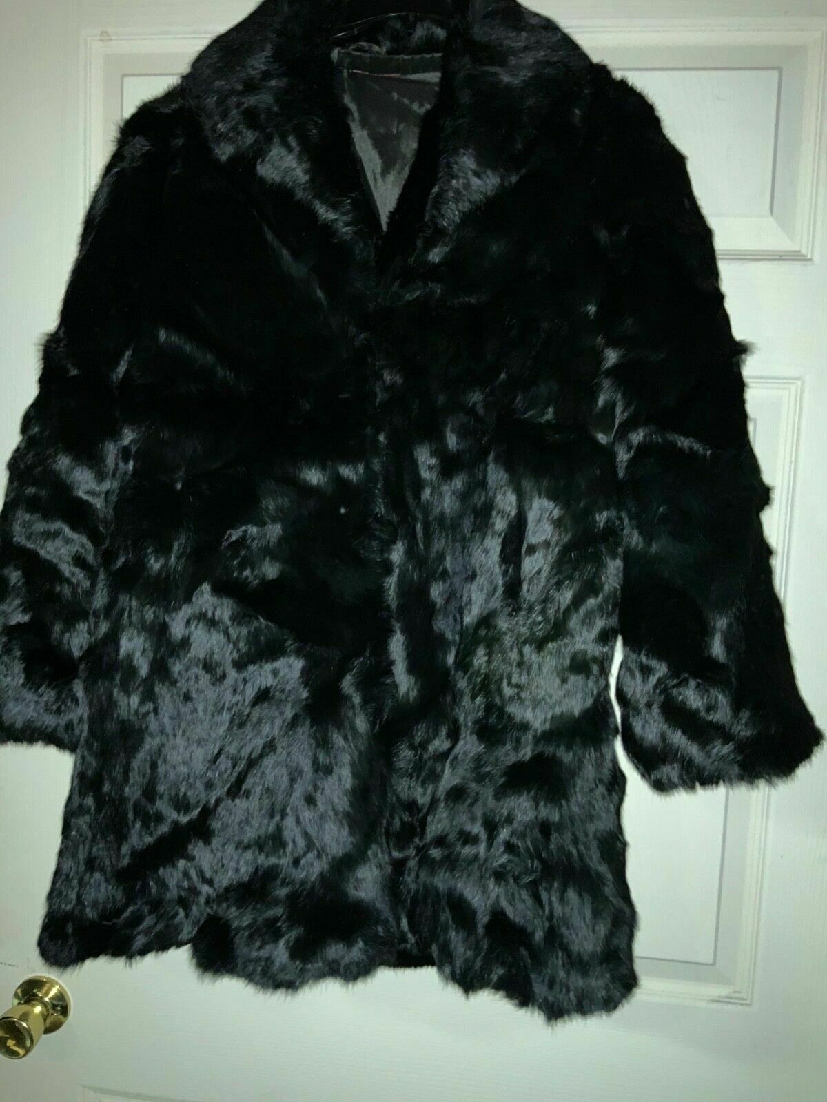 BLACK RABBIT FUR GLAM SWING JACKET SIZE SMALL PETITE