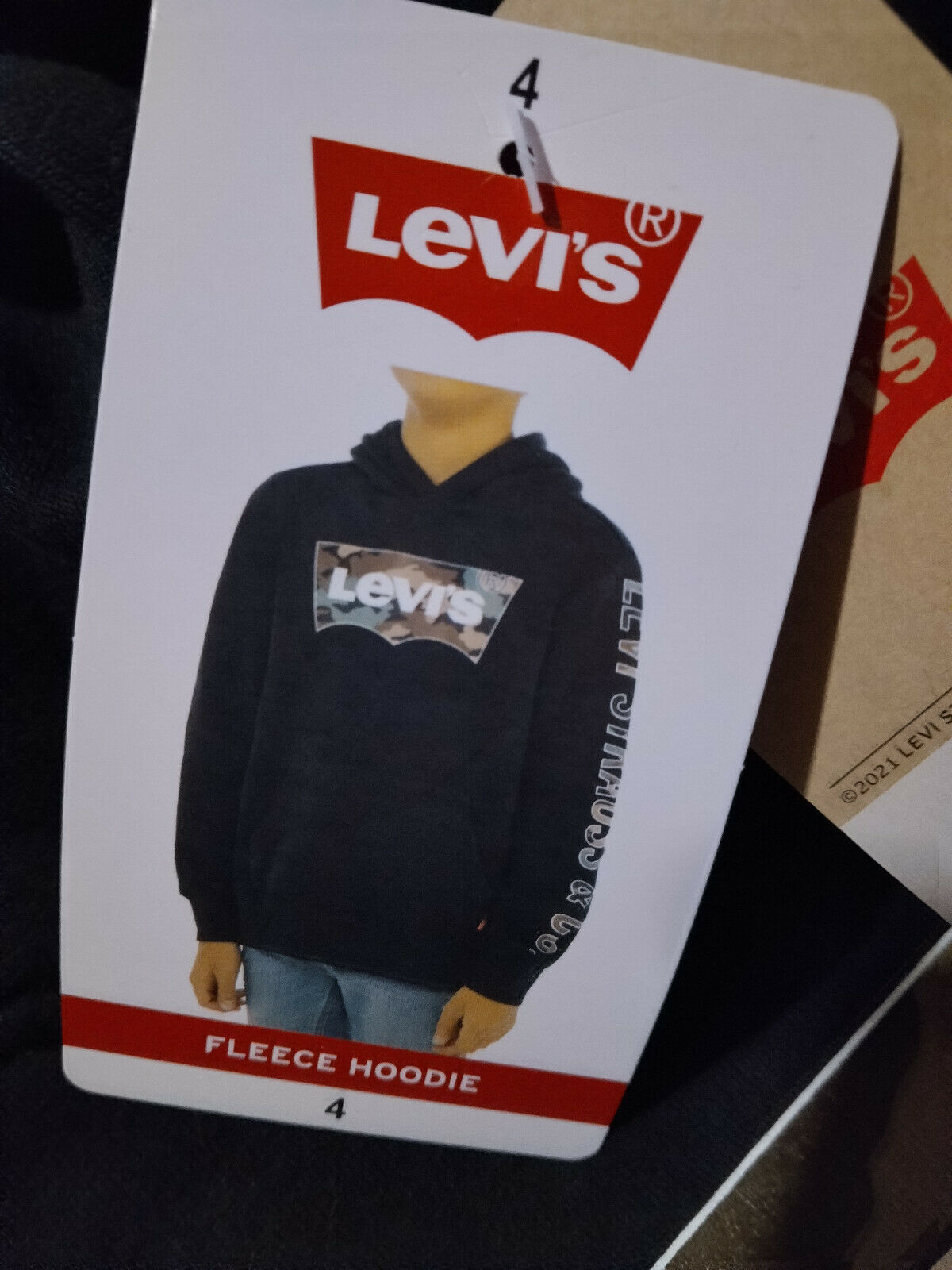 Levi Boy's Graphic Logo Soft Pullover Fleece Hoodie With Front Pocket Size 4 NWT