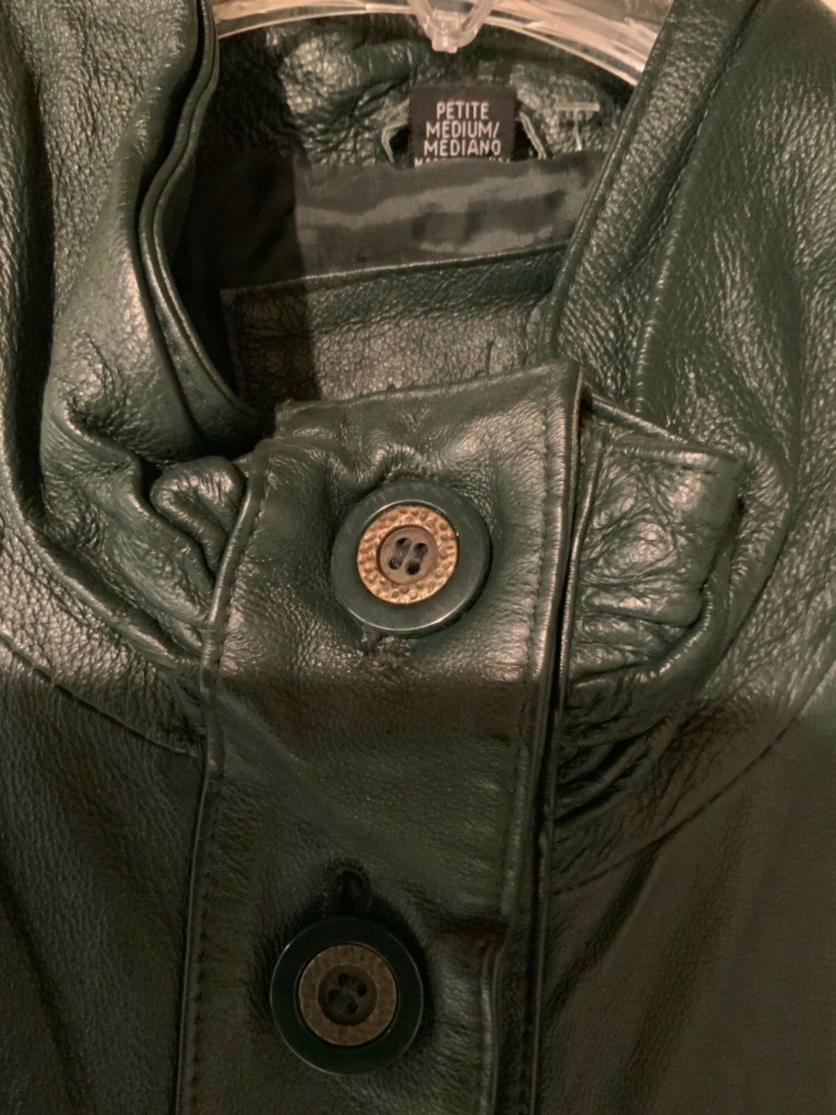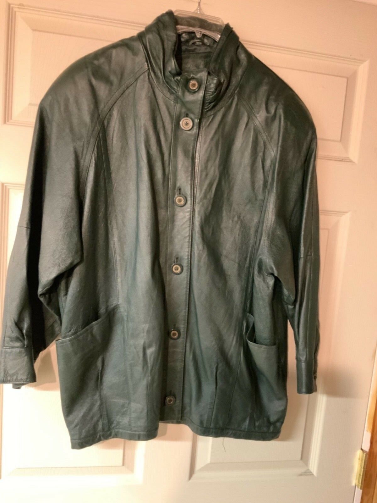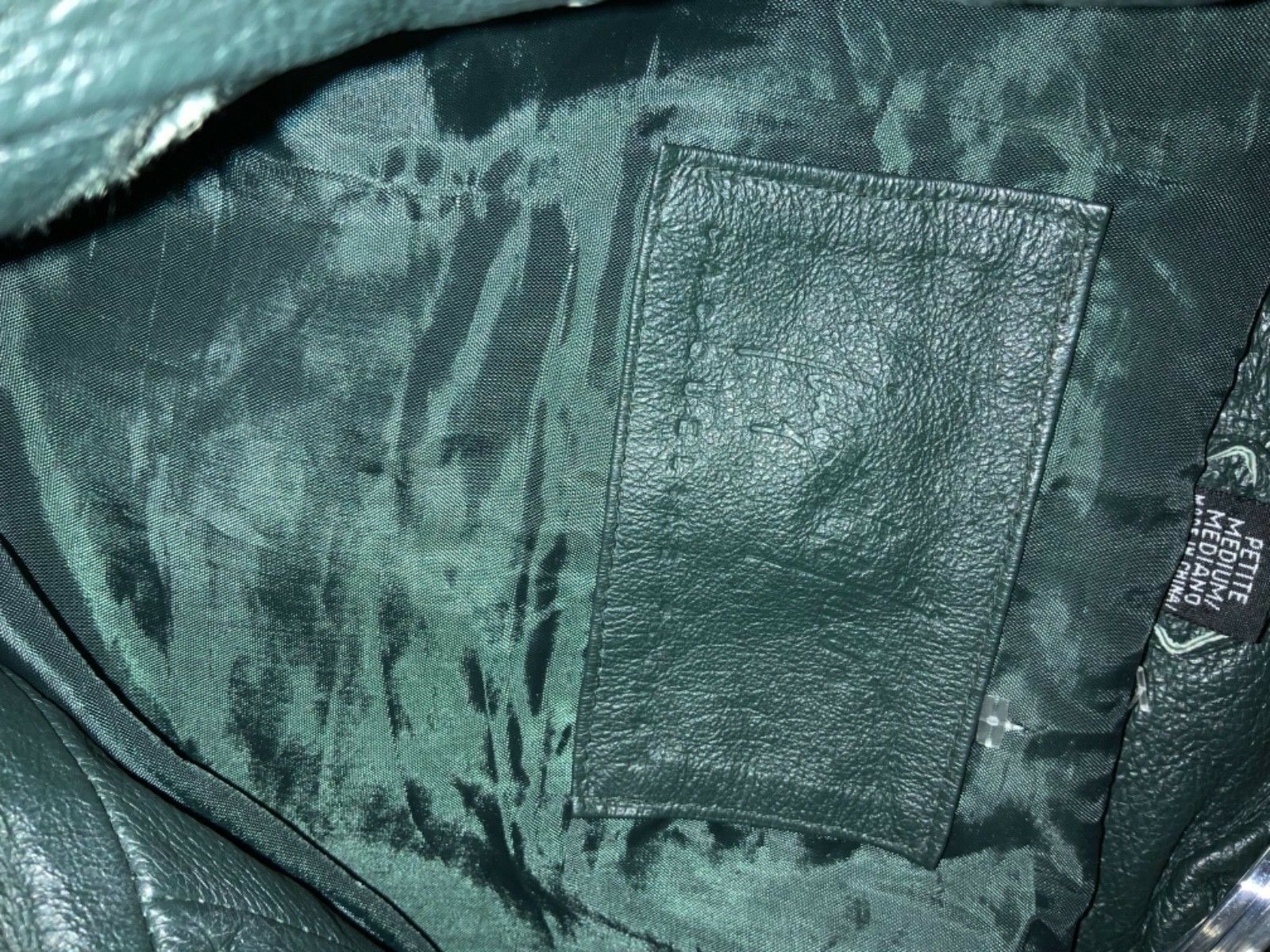 Jaquline Ferrar women’s hunter green leather jacket with shoulder pads petite M