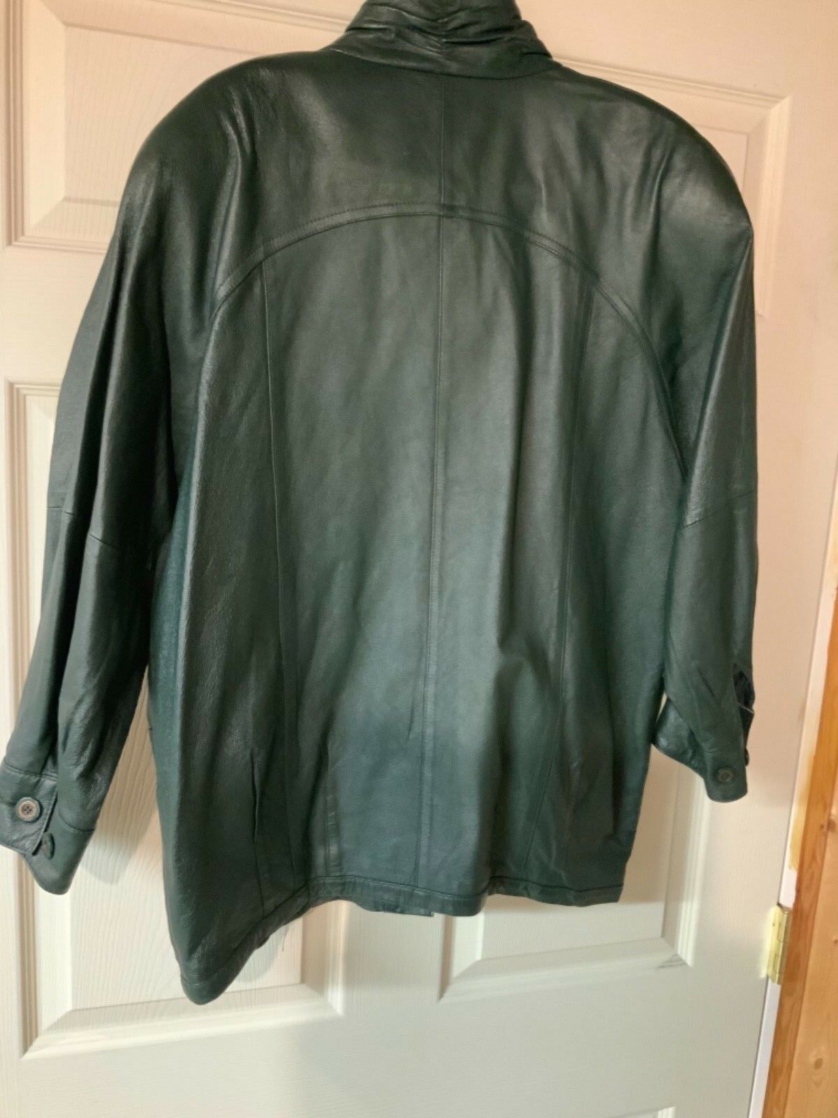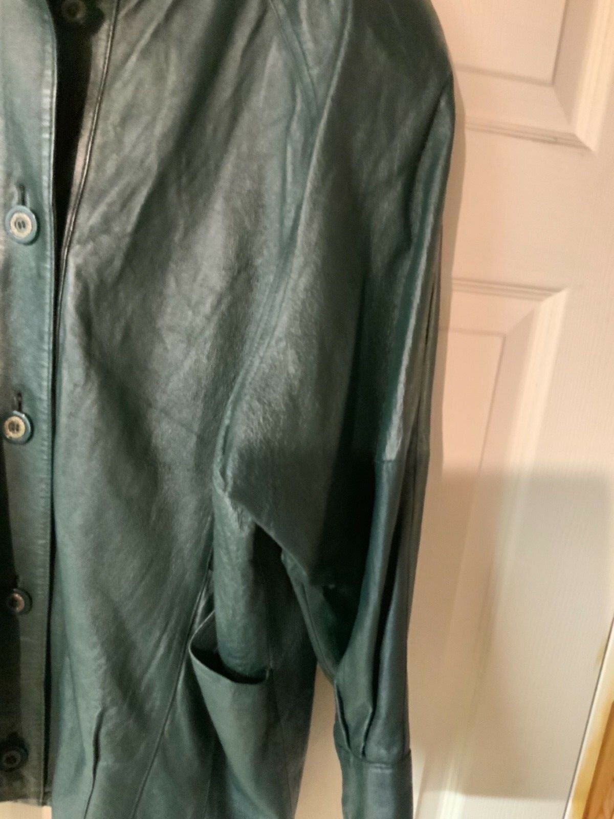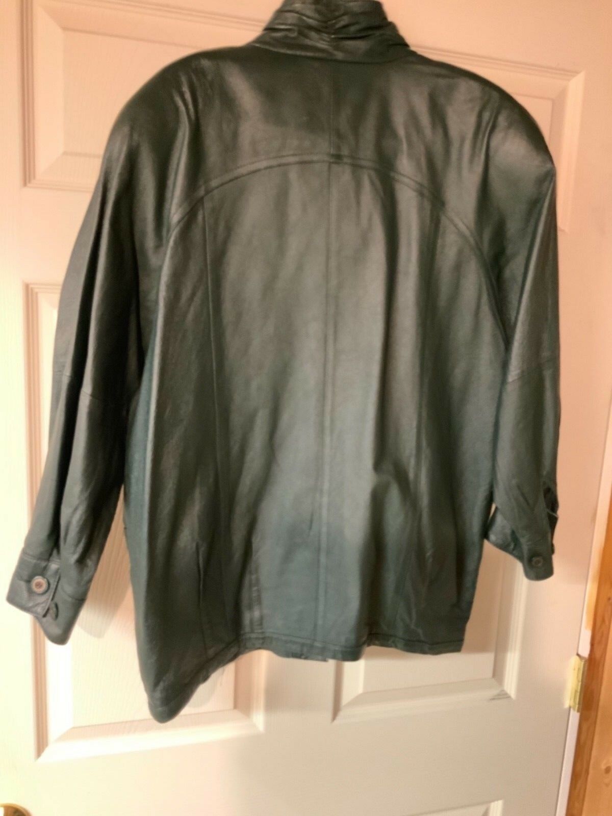 Jaquline Ferrar women’s hunter green leather jacket with shoulder pads petite M