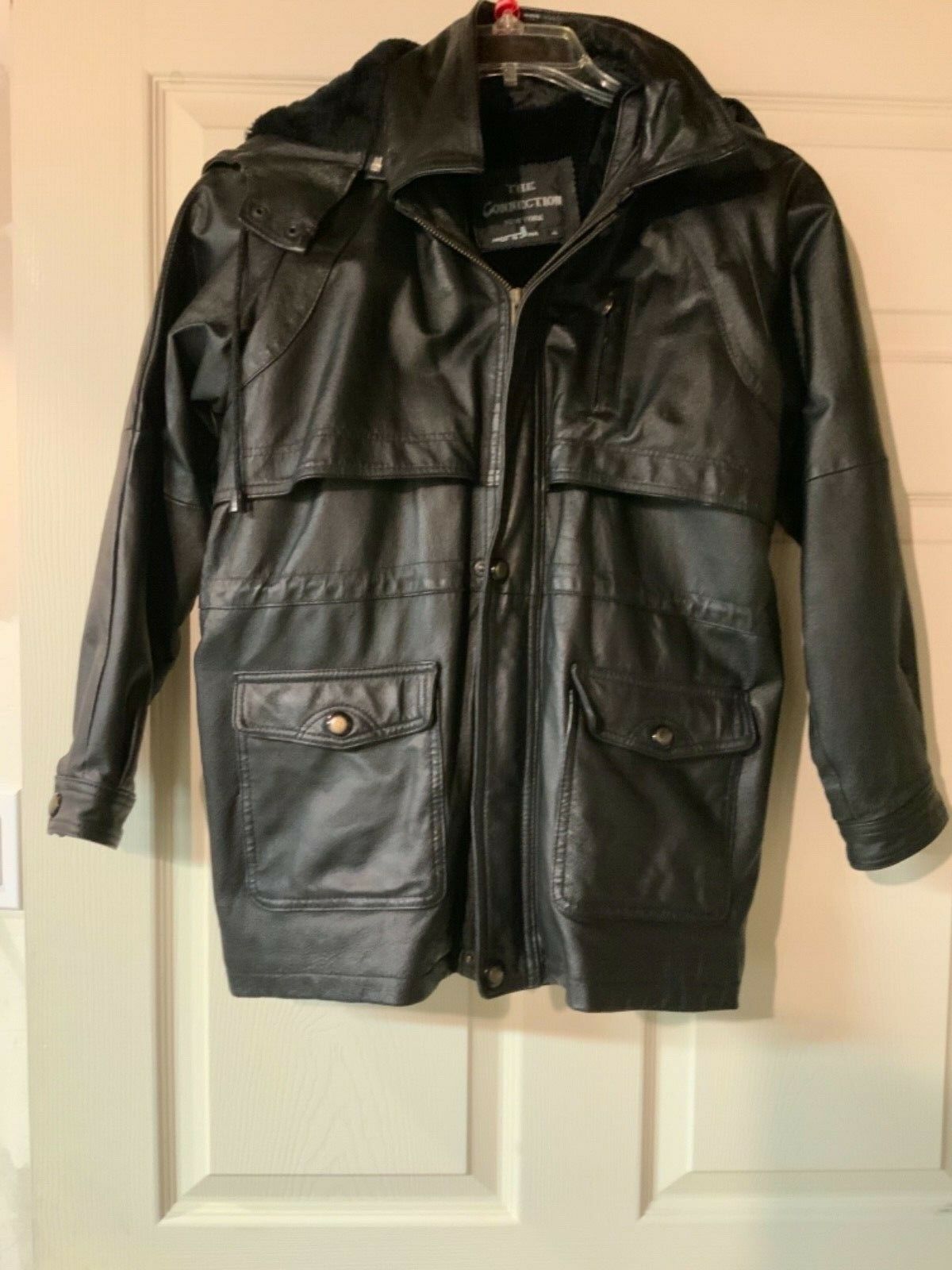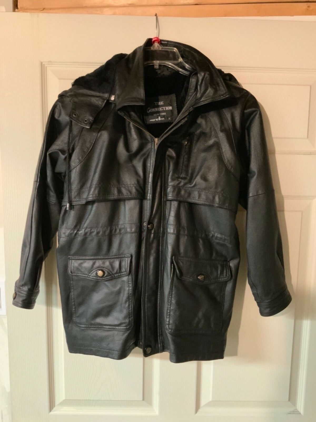The Connection New York leather coat w/removable faux fur vest and hood youth XL