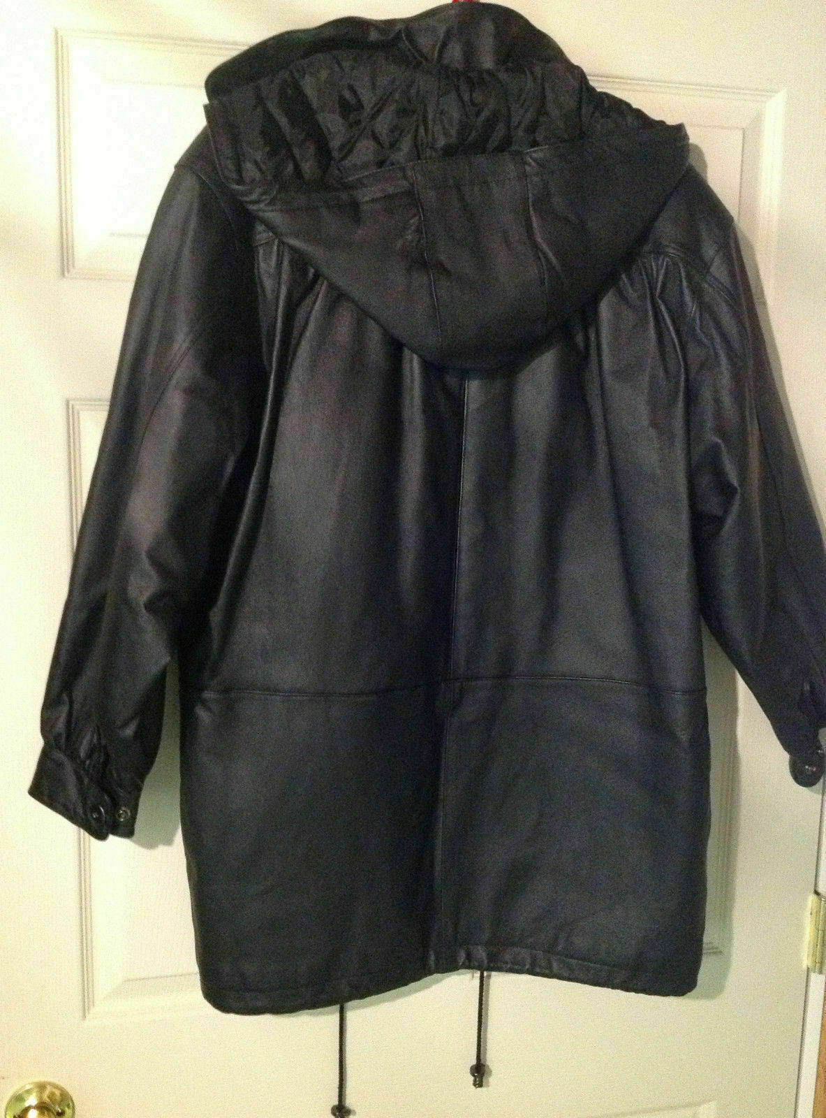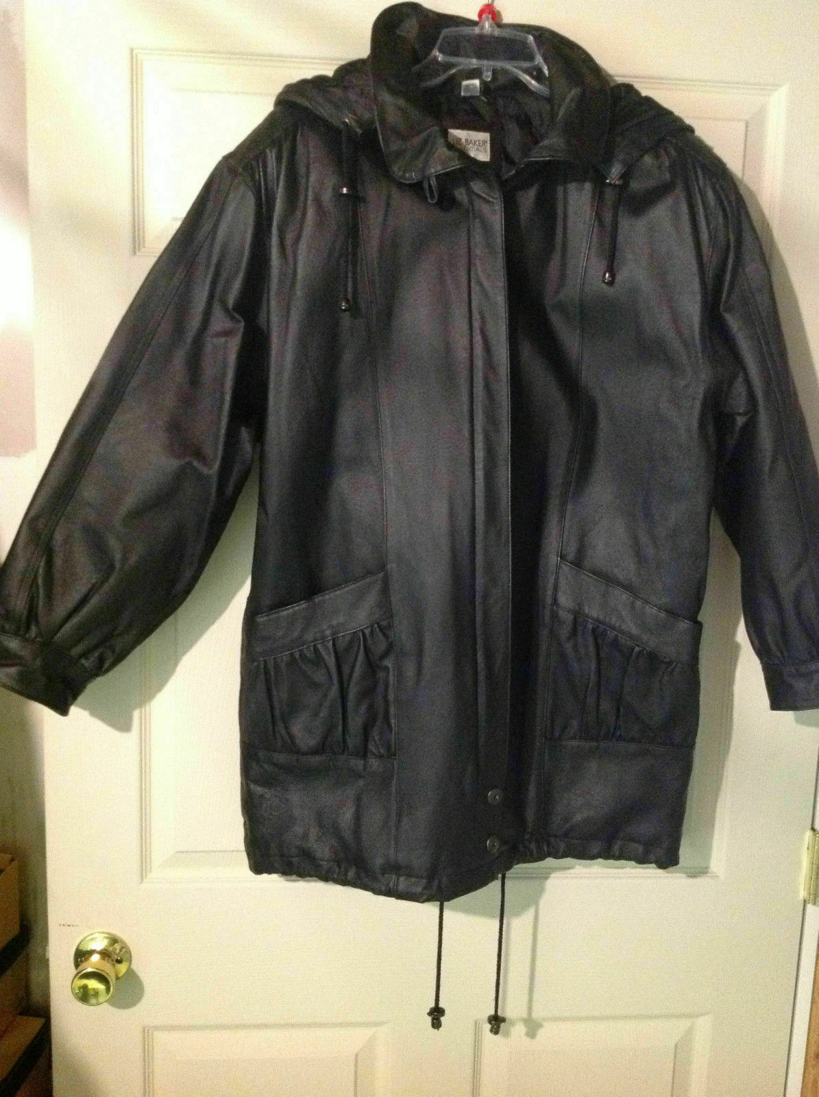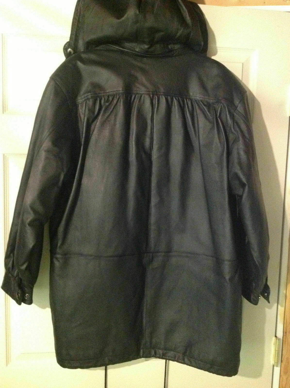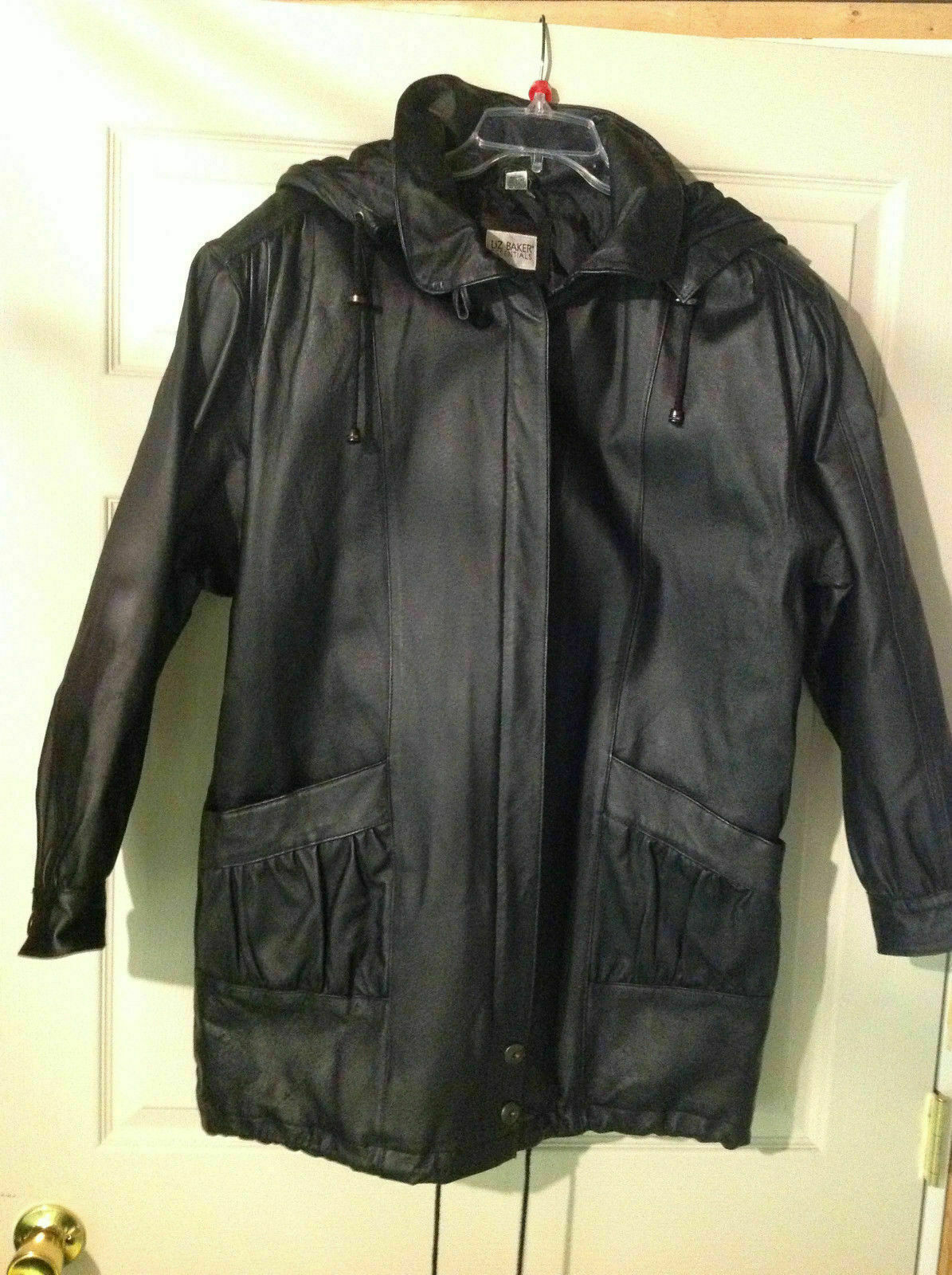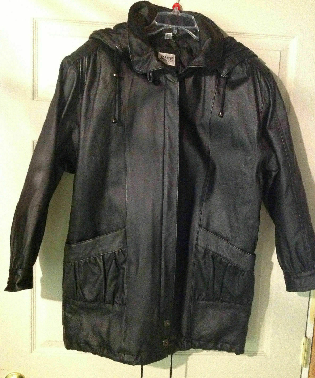 New Liz Baker Essentials premium leather hooded coat women MEDIUM