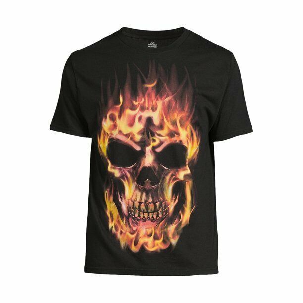 Way to Celebrate Men's Flaming Skull Halloween Graphic Tee Size M