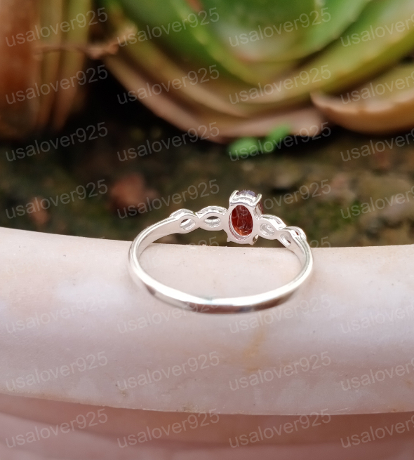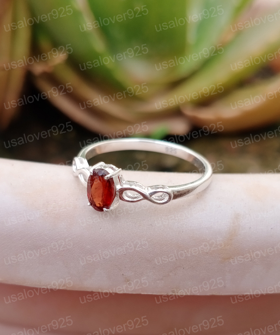 Garnet Women Silver Ring Gift For Women Sterling Silver Ring Round Stone Ring