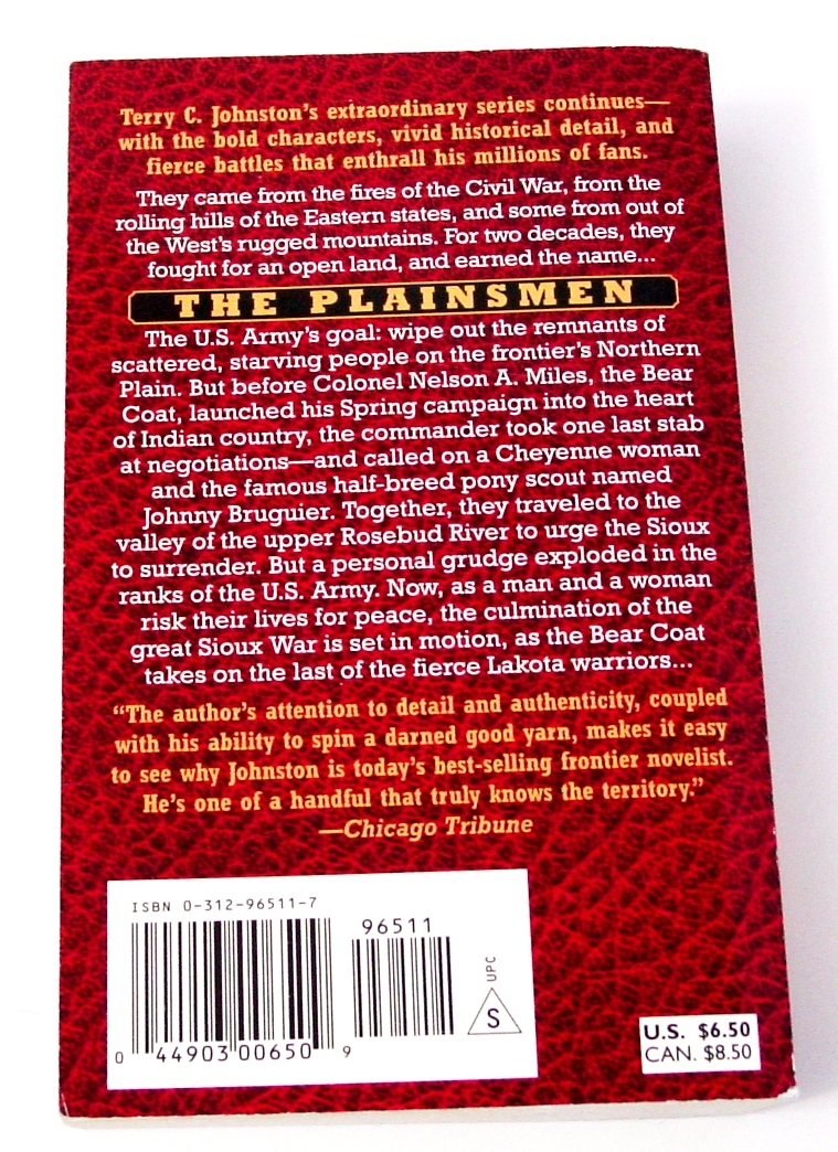 A Plainsmen Historical Novel. By Terry C. Johnston. St. Martin's, May 1998. Full number line beginning with 1. Keyhole cover. Topic: the Lame Deer Fight - May 7, 1877 and the end of the Great Sioux War.. Tight, clean copy in near fine condition. Appears unread. Pages tight and clean. Minimal cover wear (please see picture).