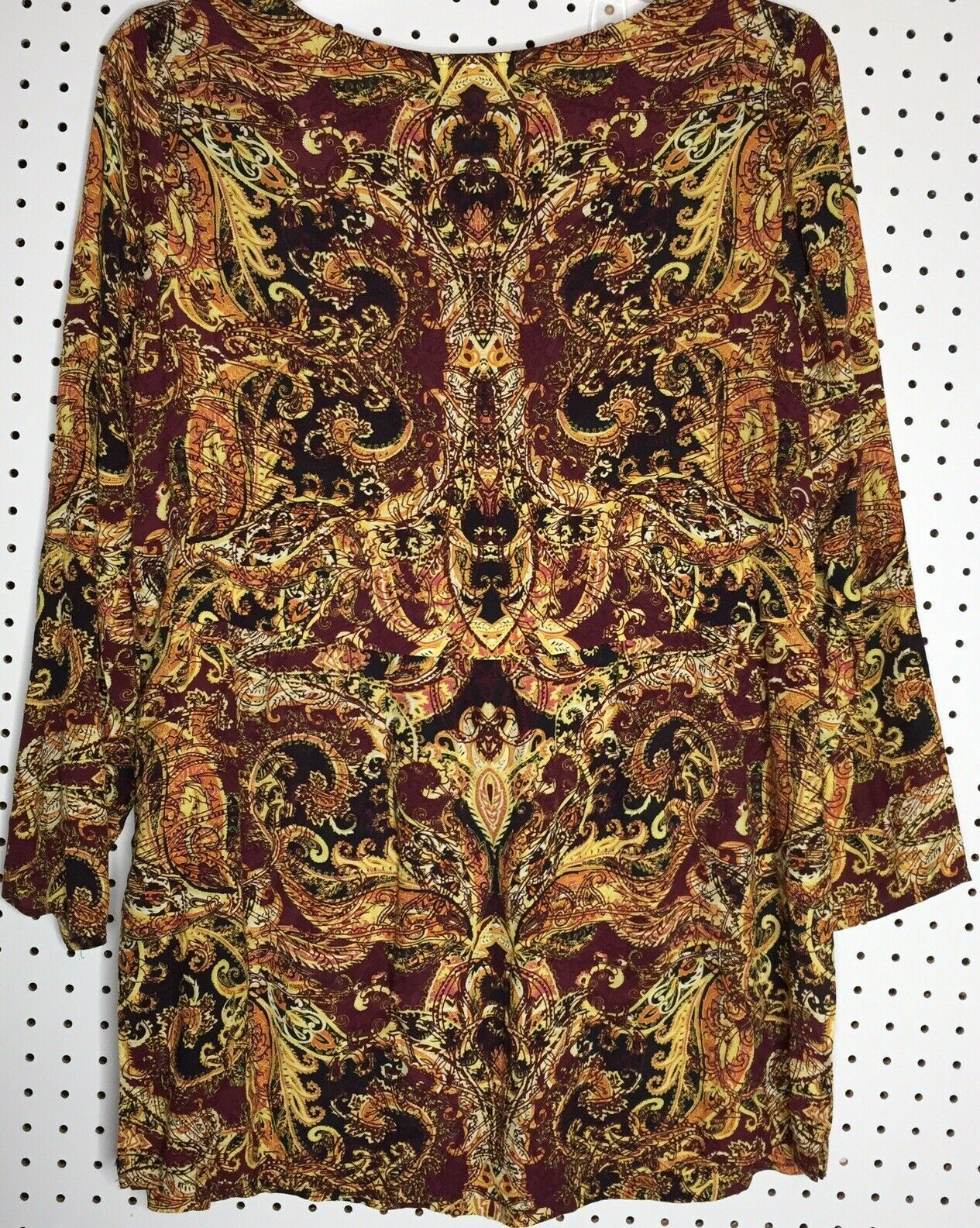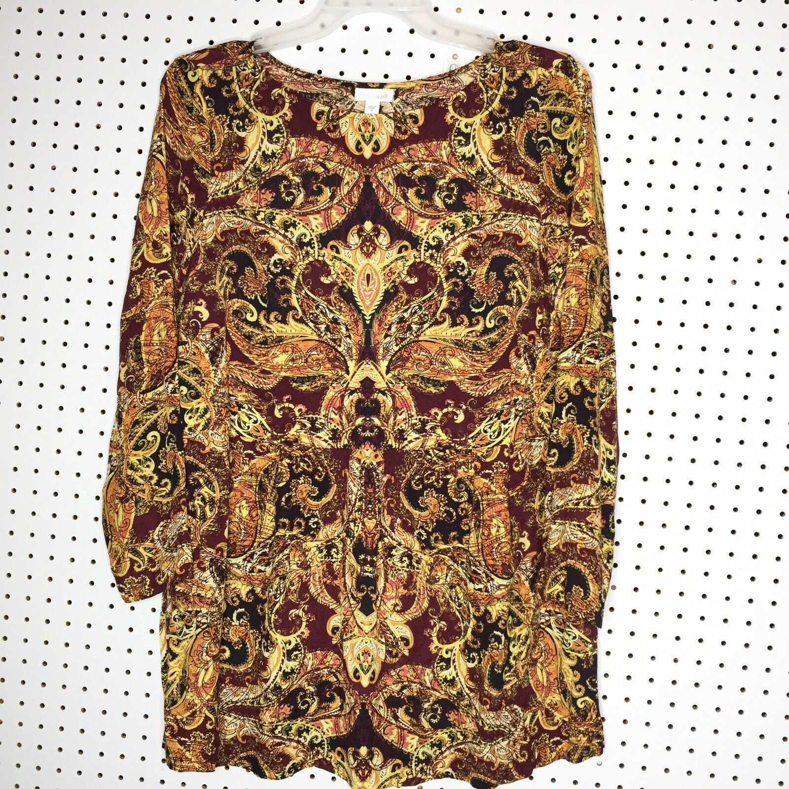 J. Jill Sz M Multi Colored Paisley Buttoned-Back Tunic Top Long Sleeve