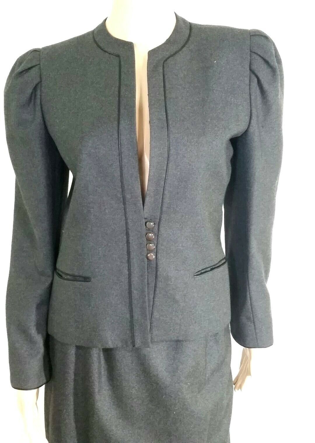DANIÈLE O TAHARI 100% Wool Gray Blazer Straight Skirt SUIT LINED SZ 8 Vintage