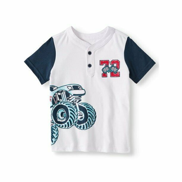 365 Kids from Garanimals Boy's Short Sleeve Graphic Henley Shirt White Size 4