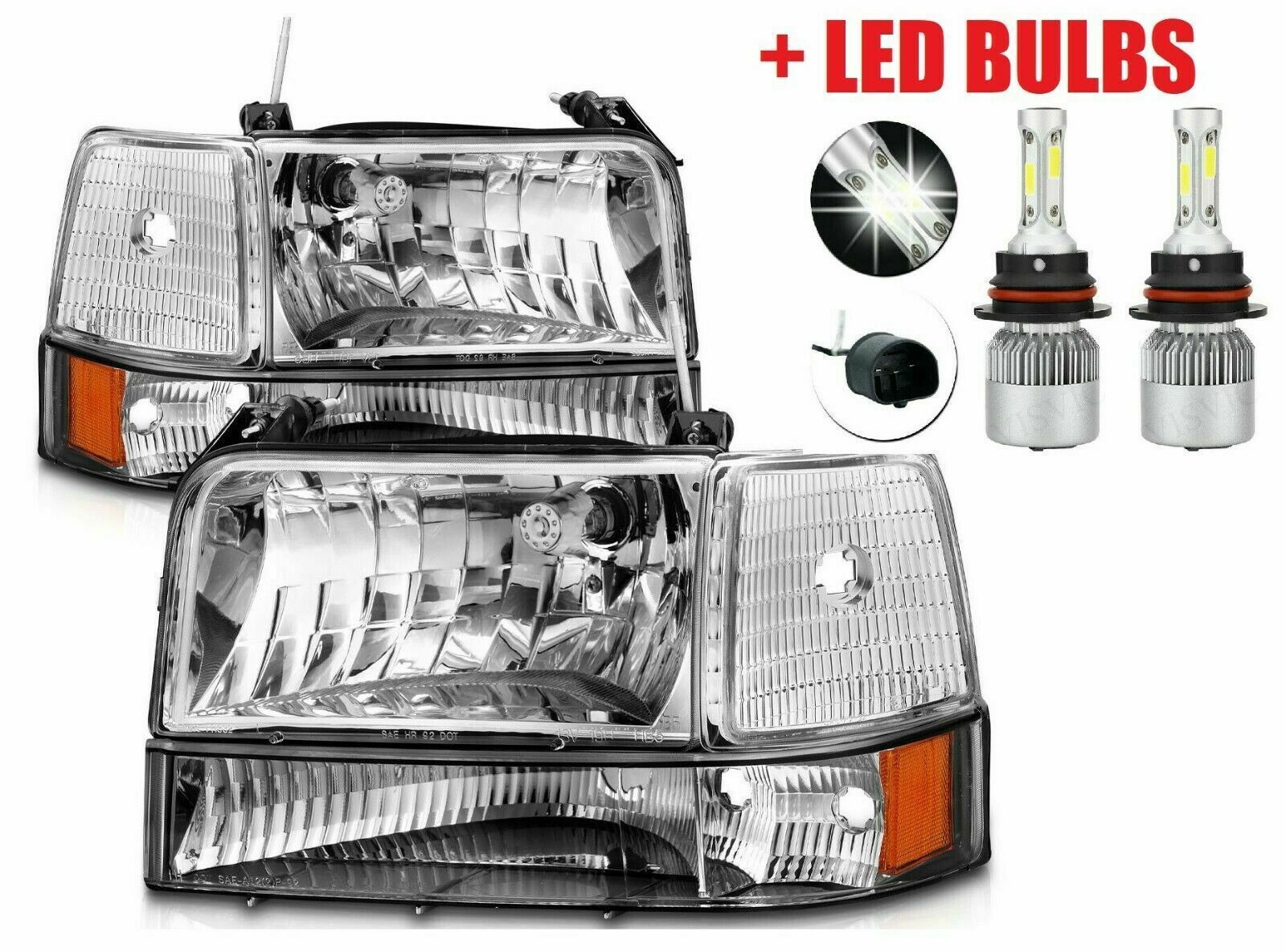 CHROME HEADLIGHT ASSEMBLIES + LOW / HIGH BEAM LED BULBS + TURN SIGNALS + PARK LAMPS