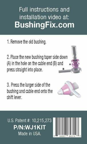WJ1Kit transfer case (4X4) shift cable kit (US patent #10,619,723 and #10,215,273) allows you to quickly and easily repair your shift selector cable by replacing the bushing.