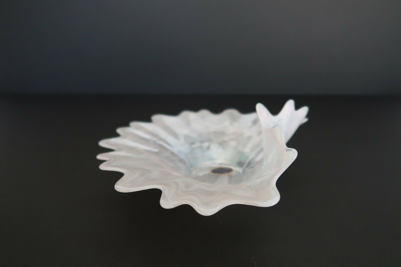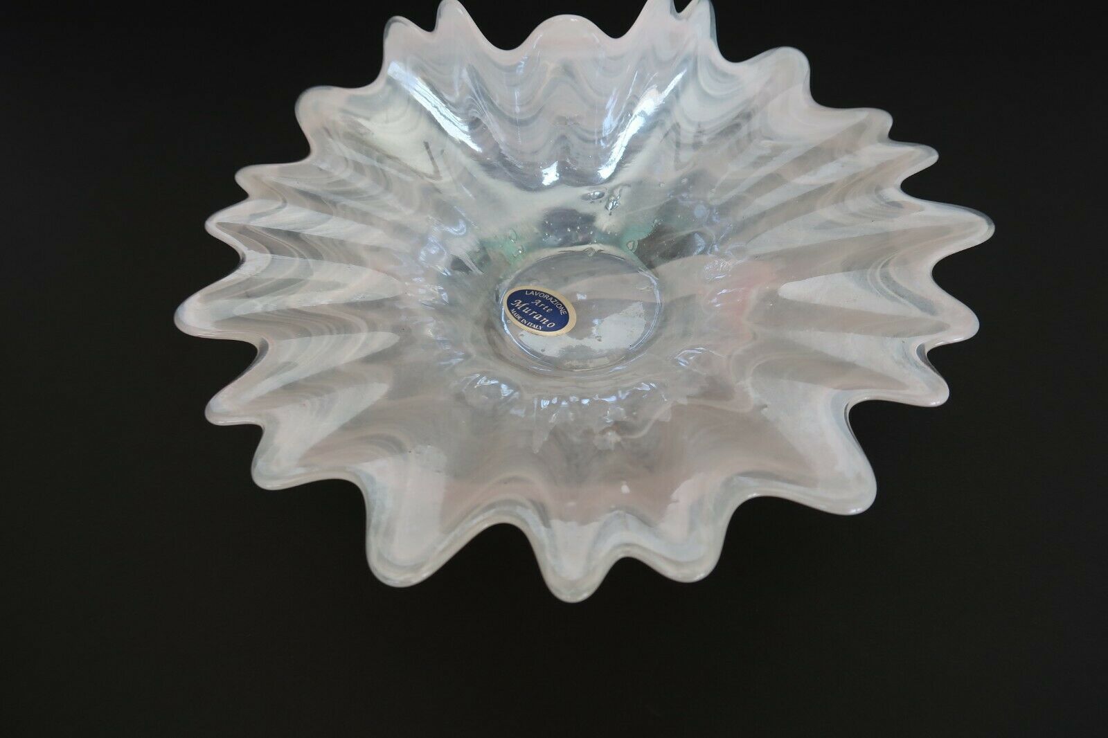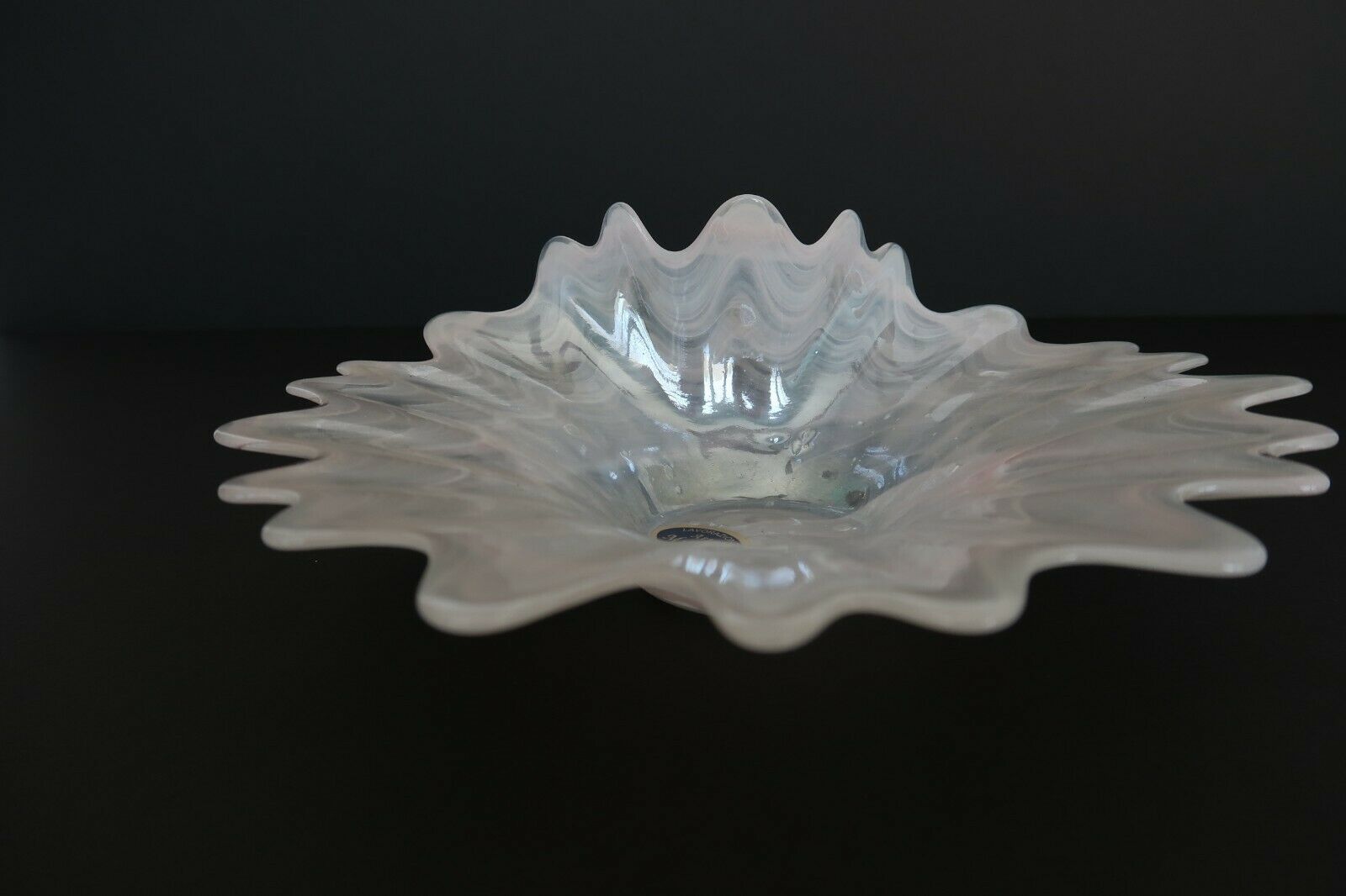 Vintage Murano hand blown pink art glass wavy edge candy dish